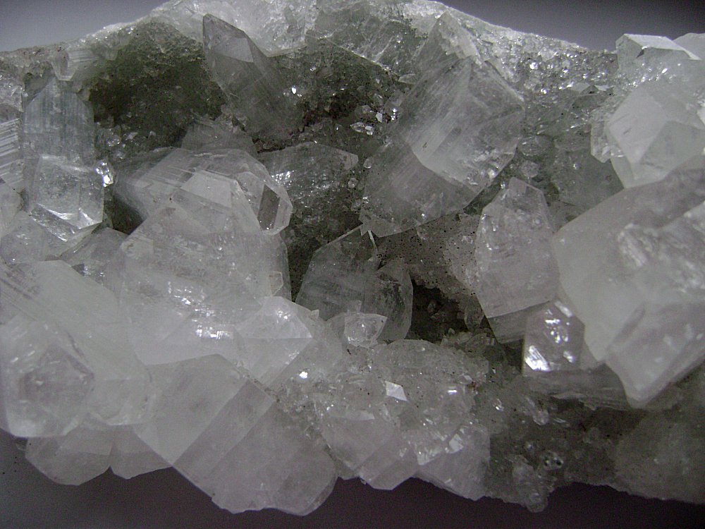 Der Apophyllit ist ist kein eigenständiges Mineral, sondern steht für eine ganze Mineralgruppe mit zwei Mischkristallreihen und den Endgliedern Fluorapophyllit, Hydroxyapophyllit, Fluorapophyllit, Carletonit.