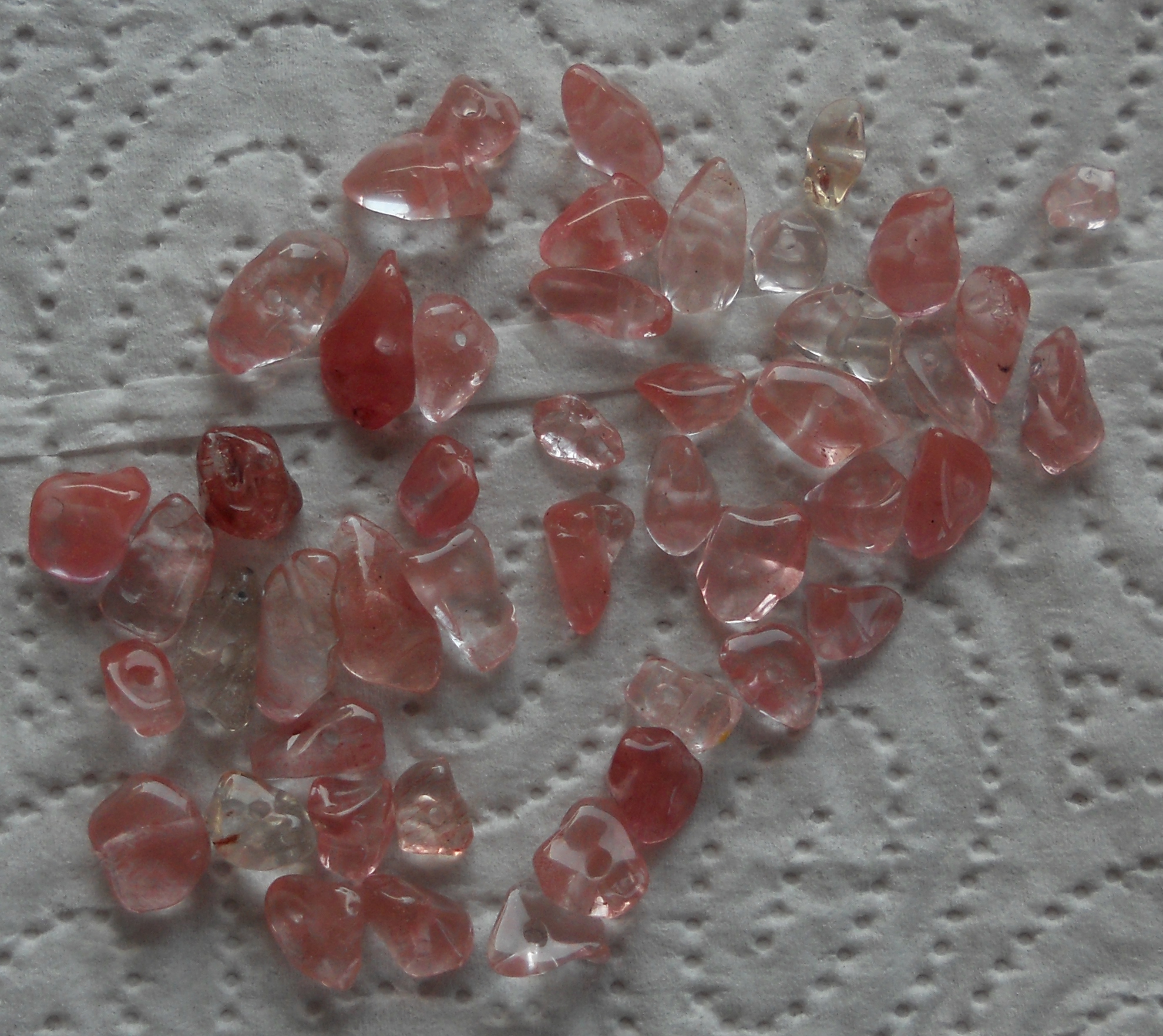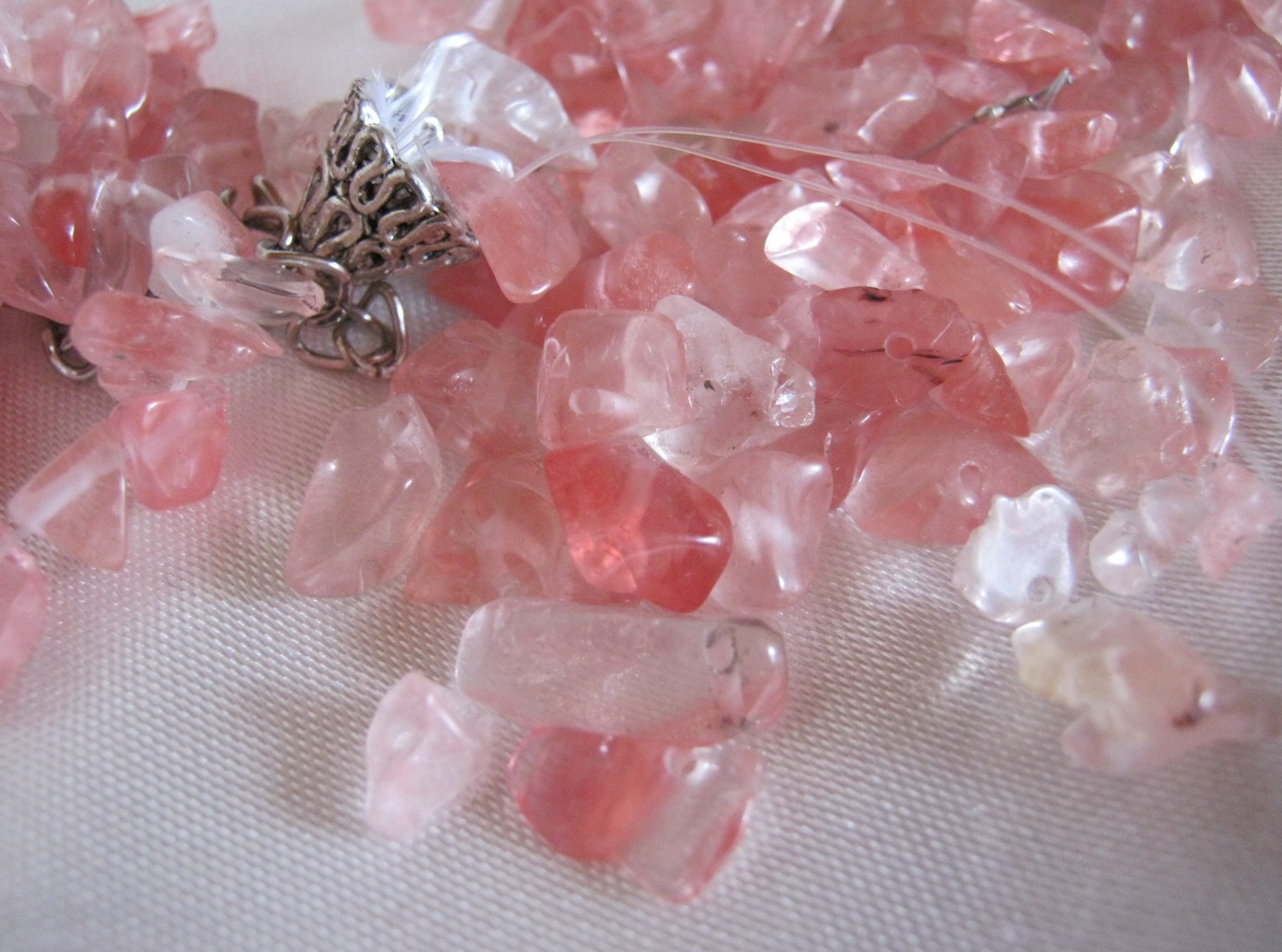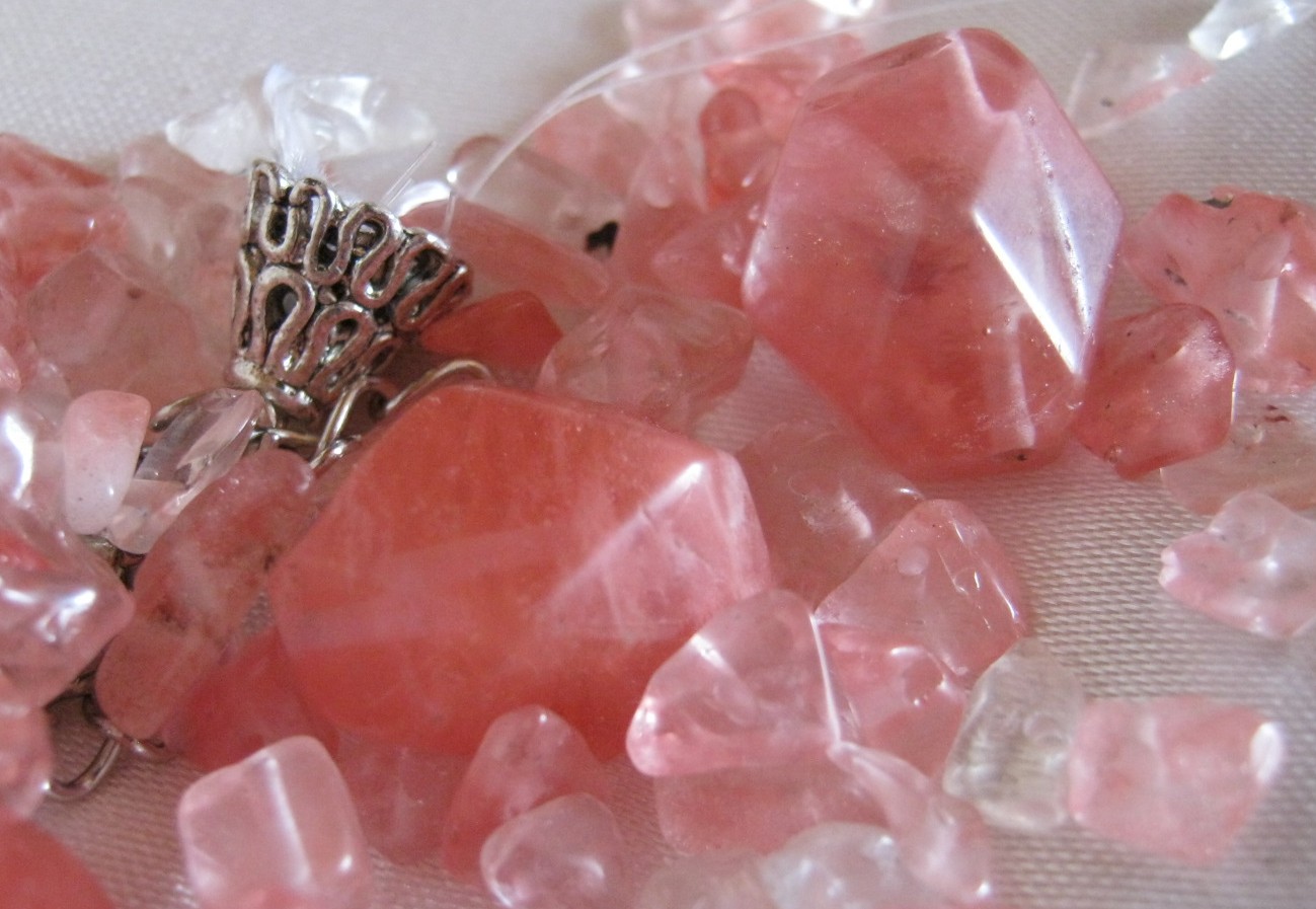 Ich habe auf einem Flohmarkt eine ganz ähnliche kette gefunden. Die Verkäuferin meinte damals zu mir, das sei Erdbeerquarz...
