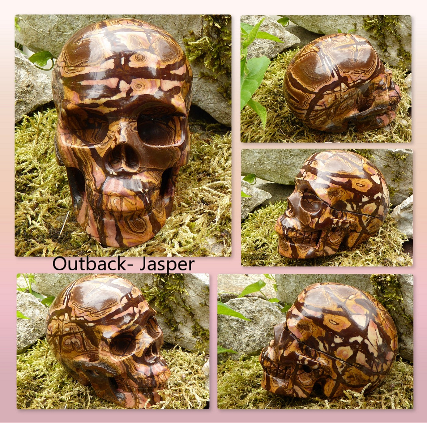 Outback-Jaspis ist eine ziemlich seltene Sorte von australischem Bilderjaspis, bei dem es sich um einen Nahtjaspis handelte der sich in einer Schicht aus gebändertem Hornstein befand.