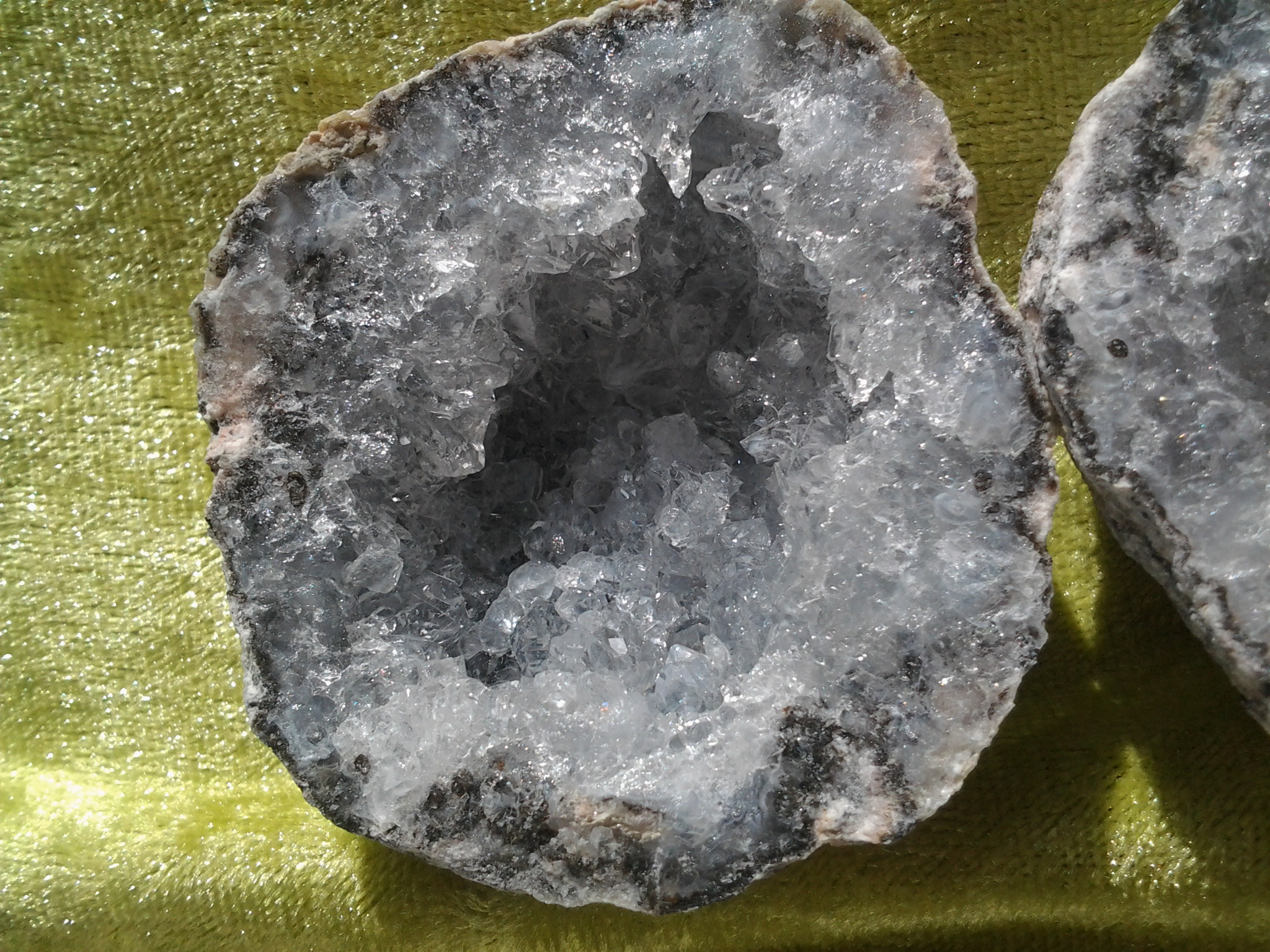 Meiner ist diese glitzernde Bergkristall-Druse. Letztes Jahr auf einem Weihnachtmarkt habe ich einen Stand entdeckt. Der Verkäufer hat auch Drusen geknackt. Ich habe mir dann diese ausgesucht, die wurde dann gewogen. Als mir der Verkäufer den Preis nannte, hab ich zuerst geschluckt, sie aber dann doch knacken lassen. Und ich bereue nicht einen Cent, den ich für diese schöne Druse ausgegeben habe