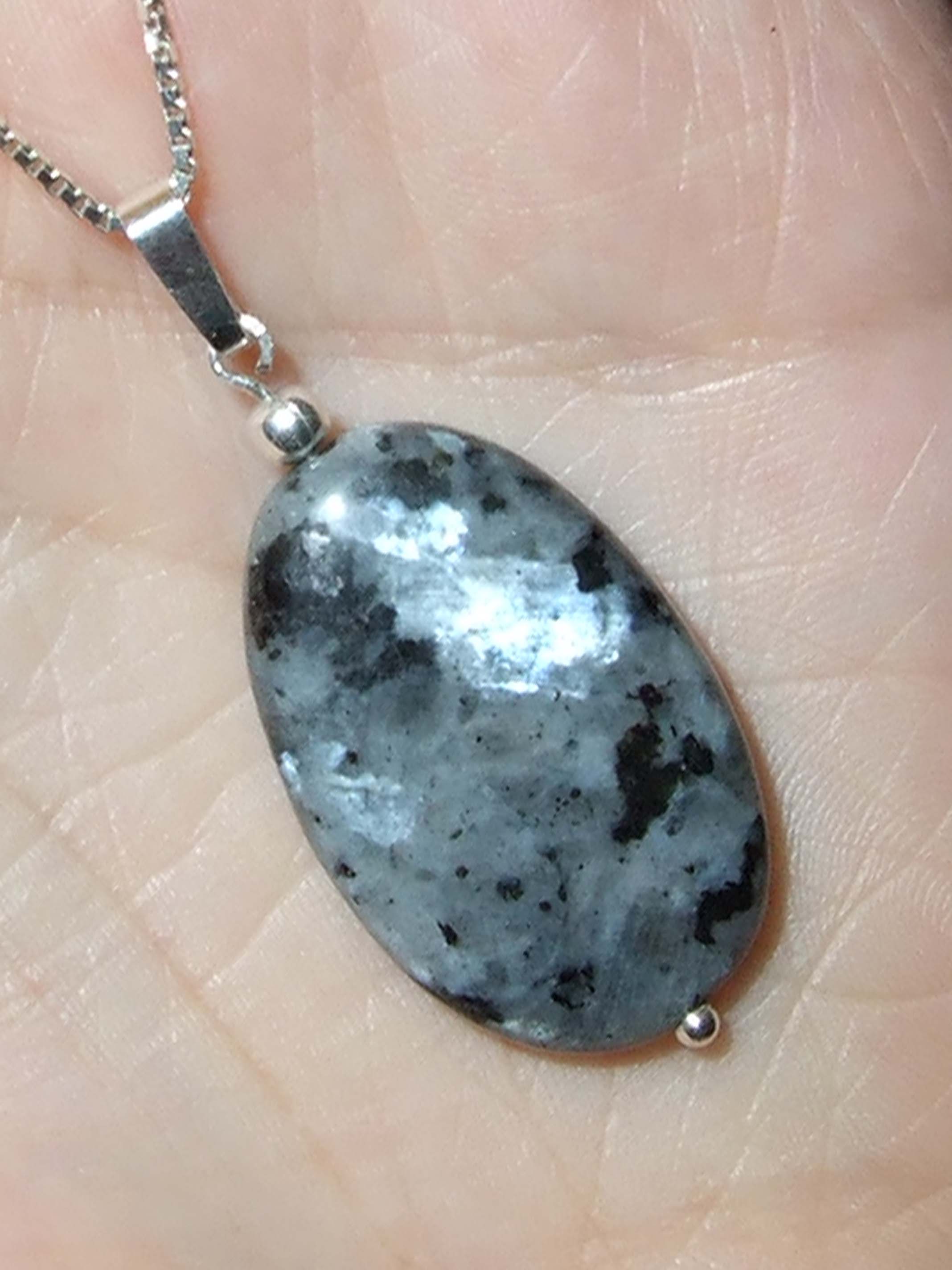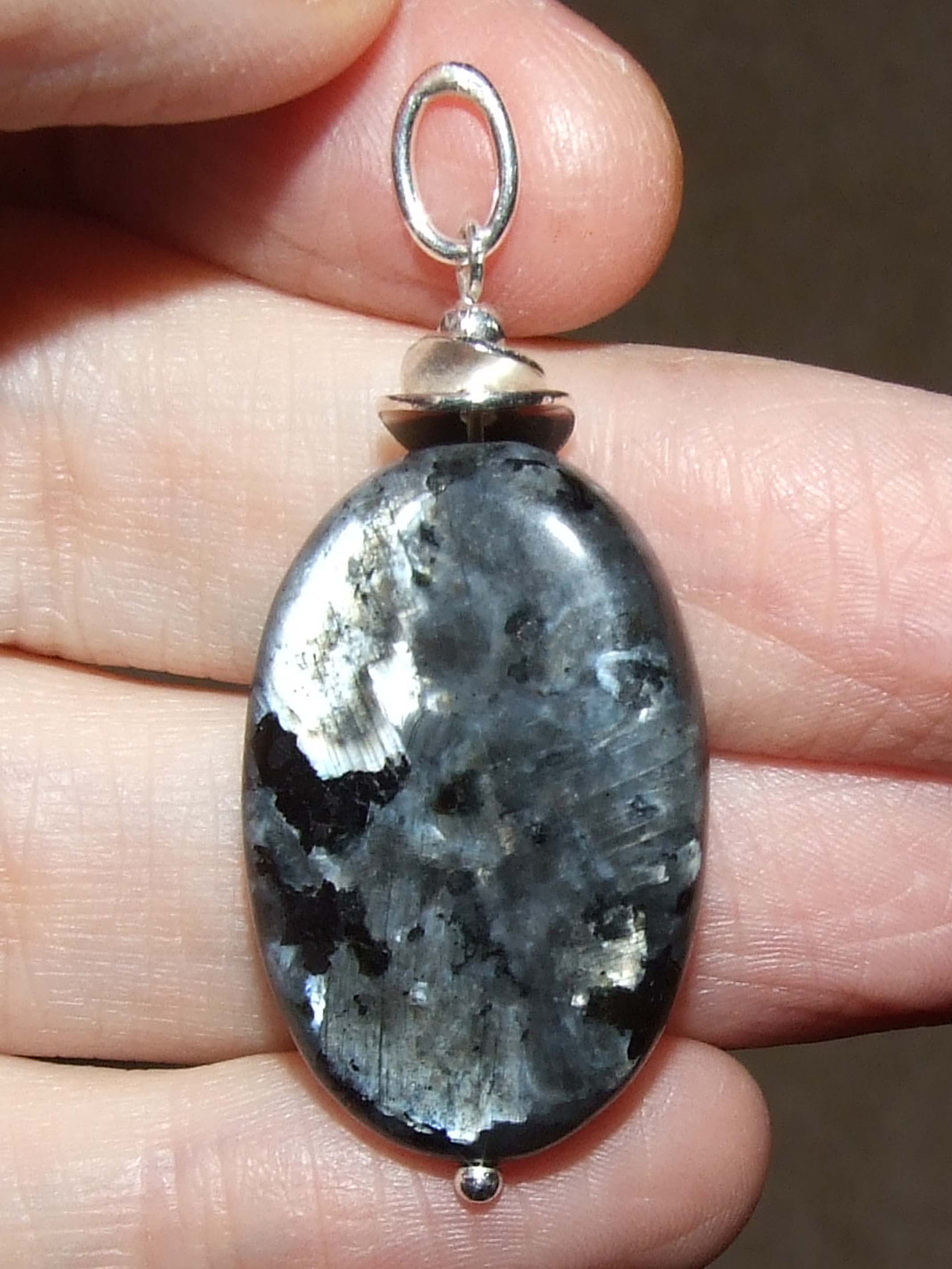 Hier zeige ich mal einen meiner Larvikit / Schwarzer-Labradorit-Anhänger.