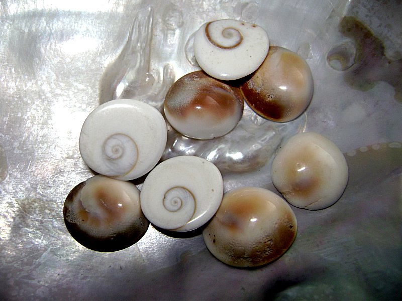 Nach dem Ableben der Kreiselschnecke löst sich das Operculum und wird als Shiva Auge freigegeben. Das Shiva Auge ist eine auskristallisierte Form von Aragonit.