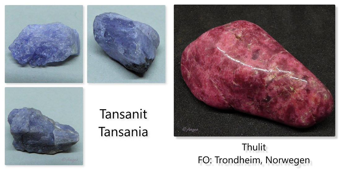Der Vollständigkeit halber hier noch Bilder von Tansanit und Thulit, freundlicherweise zur Verfügung gestellt von Morgaine
