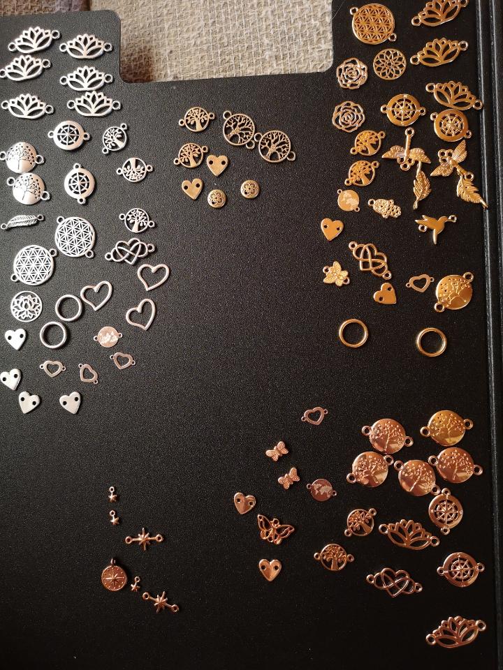 Zu allem Übel habe ich meine Schmuckmatte mit all den Sotierboxen, wo das Material drin ist, weg räumen müssen, da ich das immer am großen Wohnzimmertisch machen muss, da ich woanders keinen Platz bzw. Möglichkeit dafür habe.