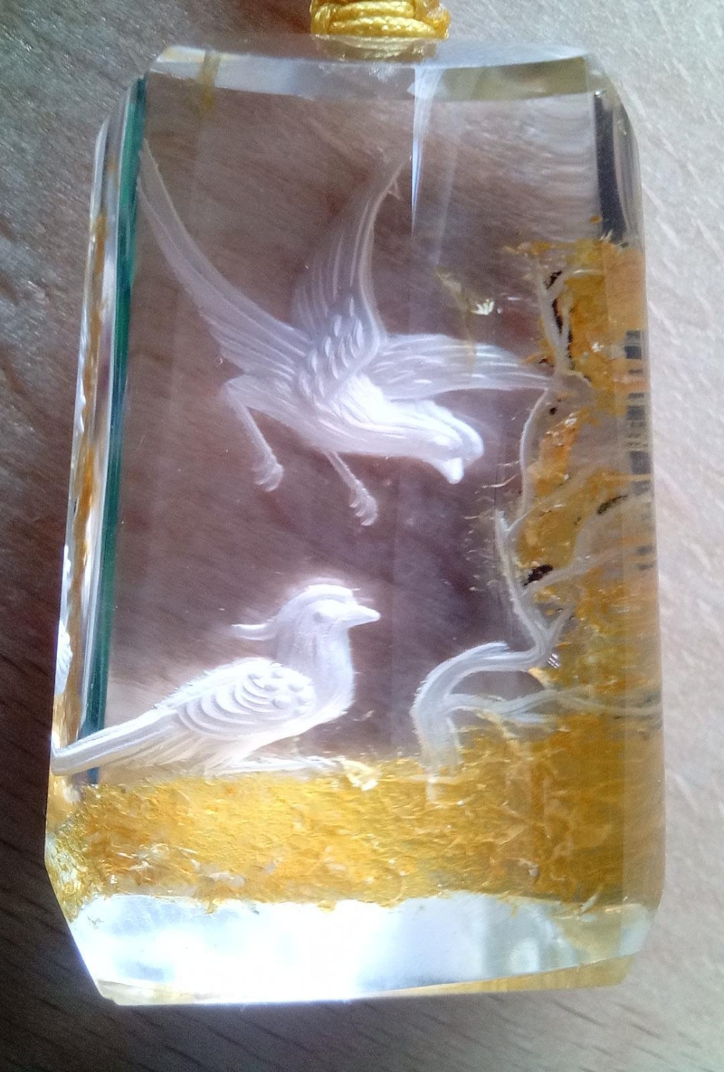 Und da ich noch einen Bergkristall-Kettenstrang frei habe, ist noch ein Lodolith mit Drachen-Gravur zu mir gewandert.