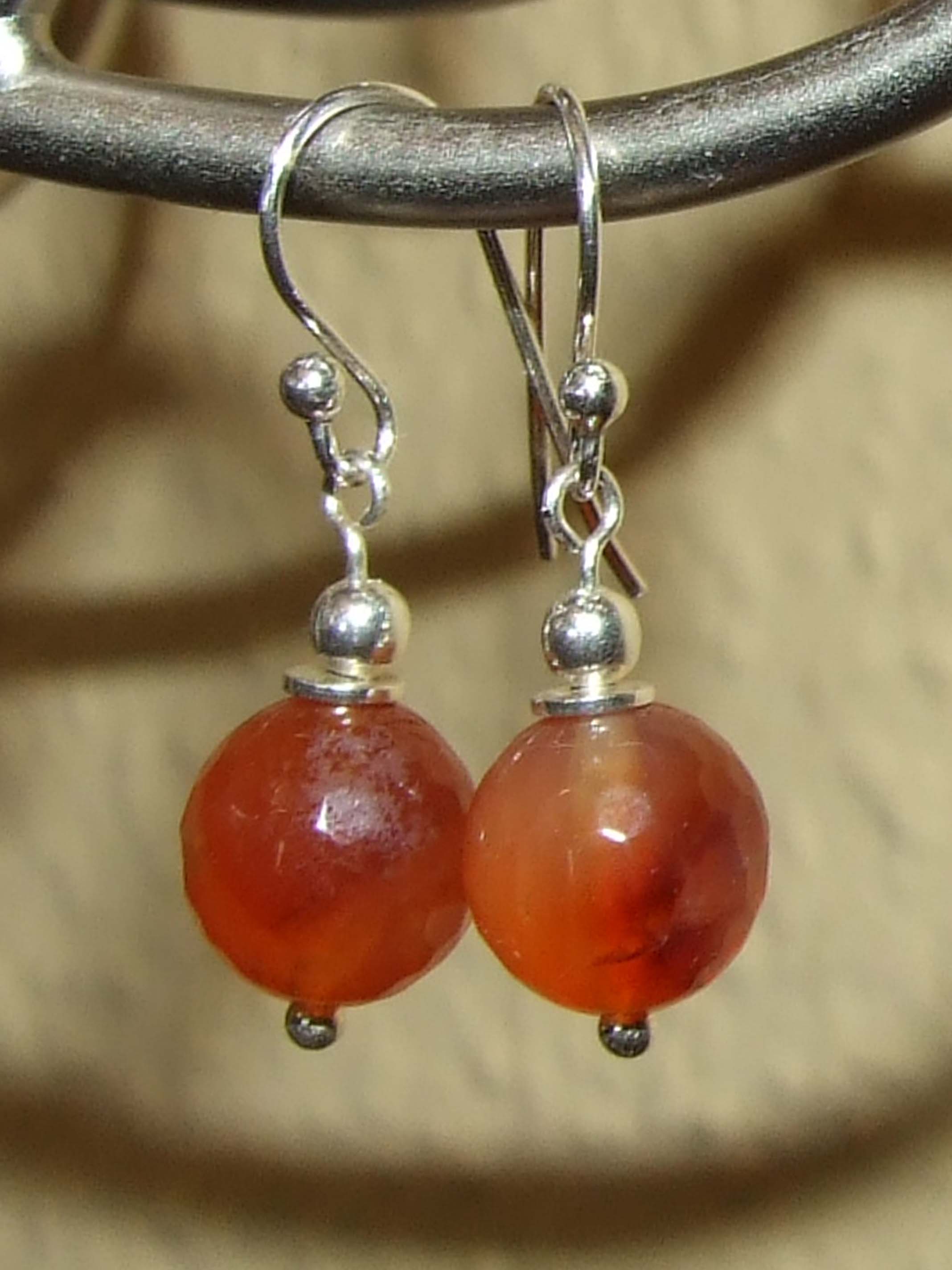 Nachdem ich die Ohrhaken etwas gekürzt habe, hängen sie einfach schöner an meinen Öhrchen. Nun bin ich zufrieden mit diesen Ohrringen. Ich mag auch diese schöne warme Farbe des Carneols, aber auch, dass sie facettiert sind.