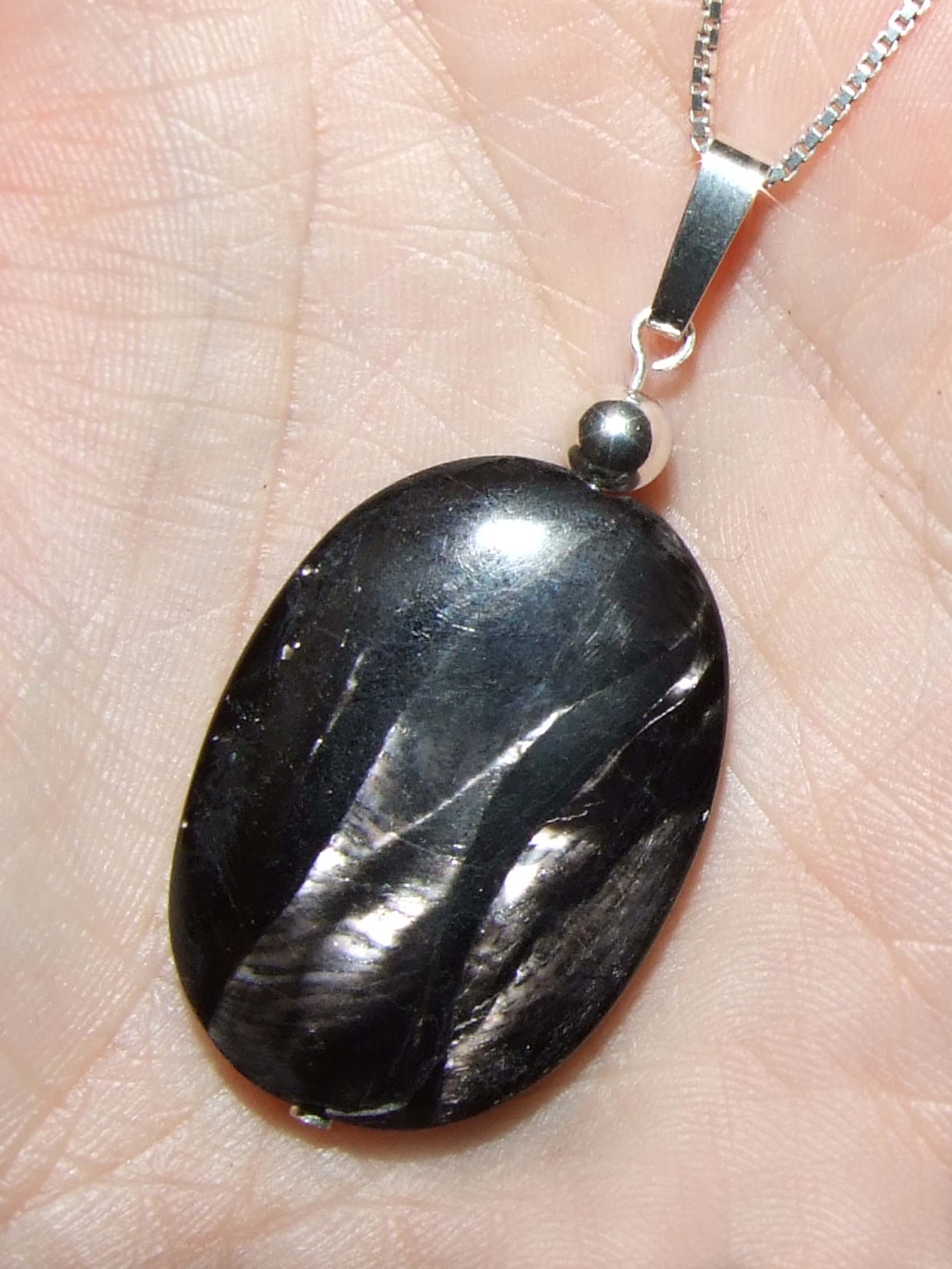 Nachher: Hypersthen-Oval-Anhänger mit 3 mm großer Silberkugel.