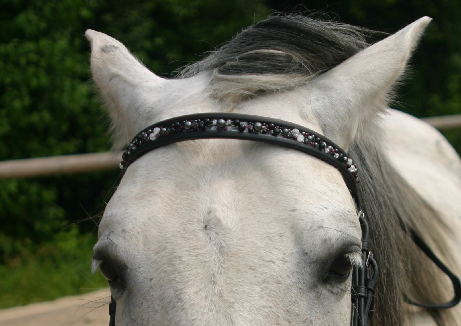 Ich trage auch gerne Hängeohrringe, aber meine Pferd (ein Schecke mit viiiiiiel weiß) trägt keinen Stirnriemen in seinem Kopfstück - doch, egal, interessiert mich trotzdem :D