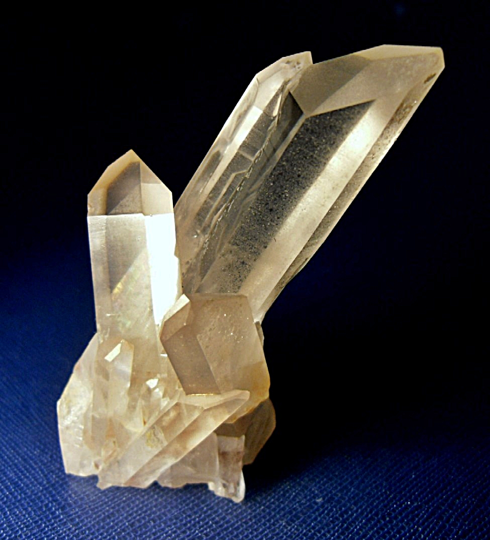 ein sog. fadenquarz: durch einen tafeligen flacherquarz zieht sich ein (durch winzigste flüssigkeitseinschlüsse) milchig aussehender 'faden', der einen riss während der kristallisationsphase des quarzes an seiner kristallographischen achse schloß.