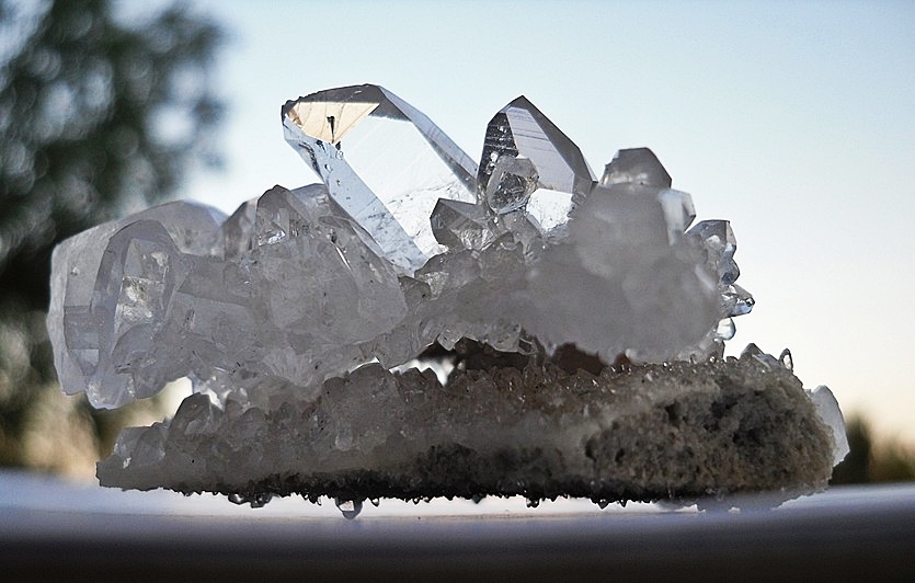 das nächste bild ist vom gleichen quarzstück, das insbesondere an der spitze glasklar ist.