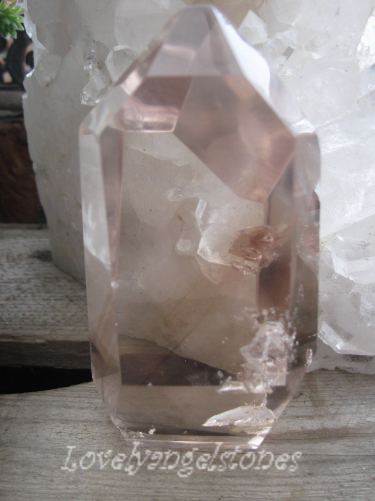 Was hier aussieht wie ein sehr leichter rauchquartz ist ein quartz der ganz zart rosa ist.