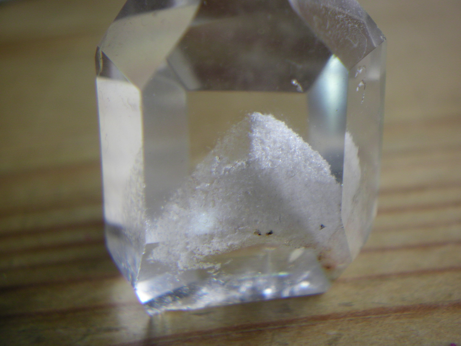 Mineralicon, du wolltest doch was zu dem "Schnee" in meinem Phantom-Bergkristall sagen. Oder sind die Fotos zu schlecht für eine Bestimmung?
