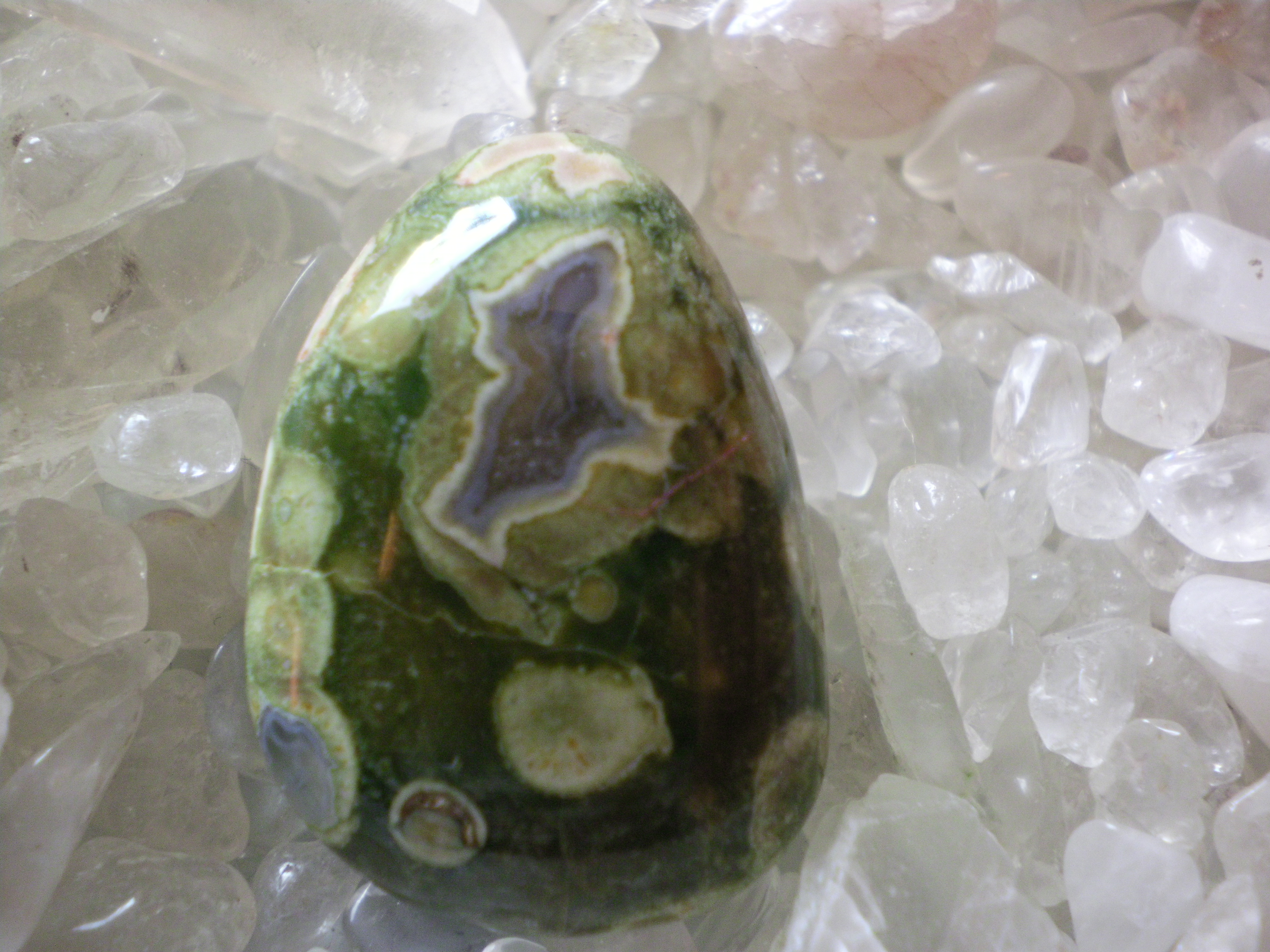 Regenwald-Rhyolith Donut 5,9 cm und 44 Gramm (Vorder- und Rückseite) - Kugel 2 cm - Herz 3 cm