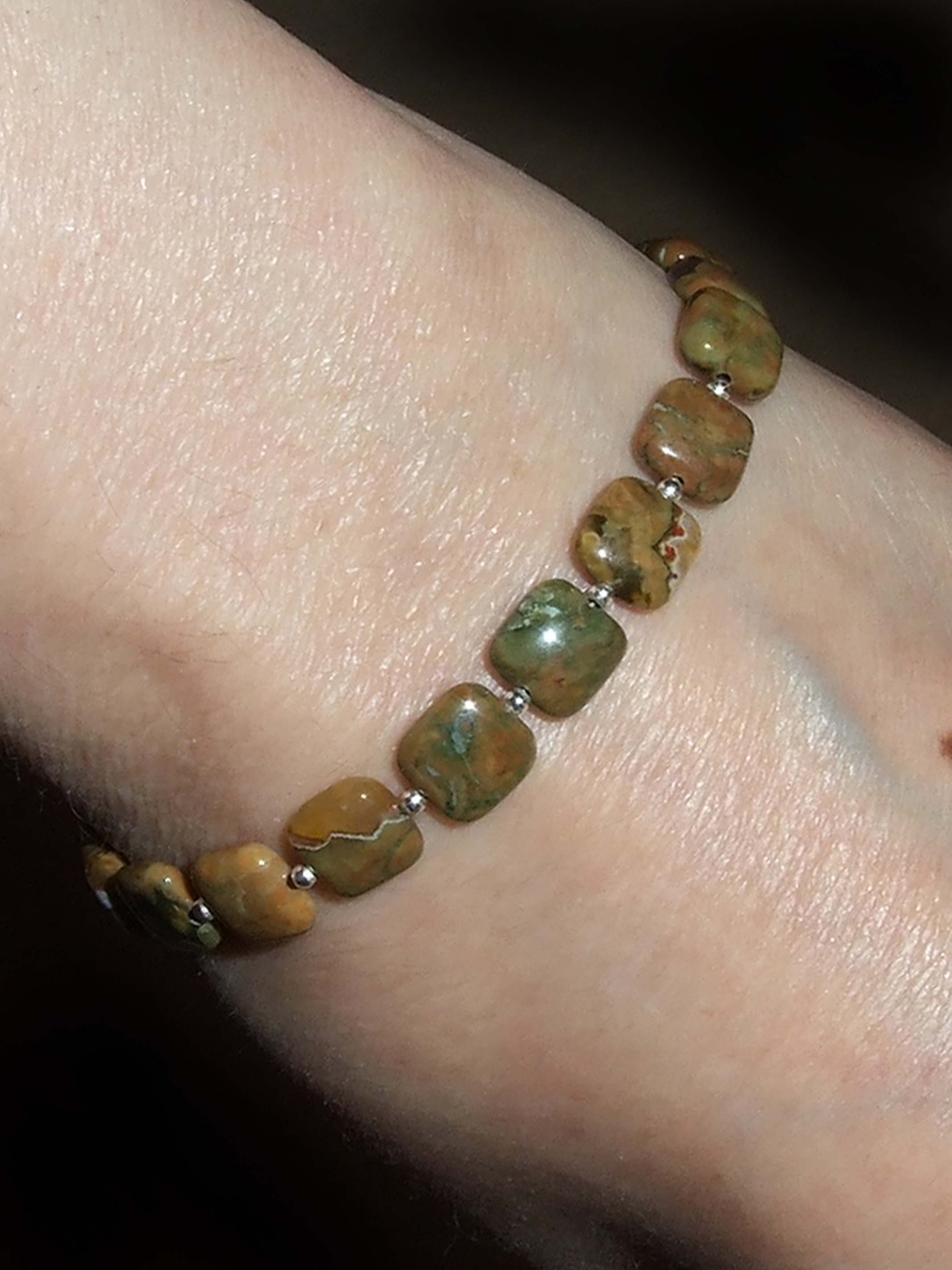 Hier sind mal zwei Regenwald-Rhyolith-Armbänder in unterschiedlicher Farbgebung. :D