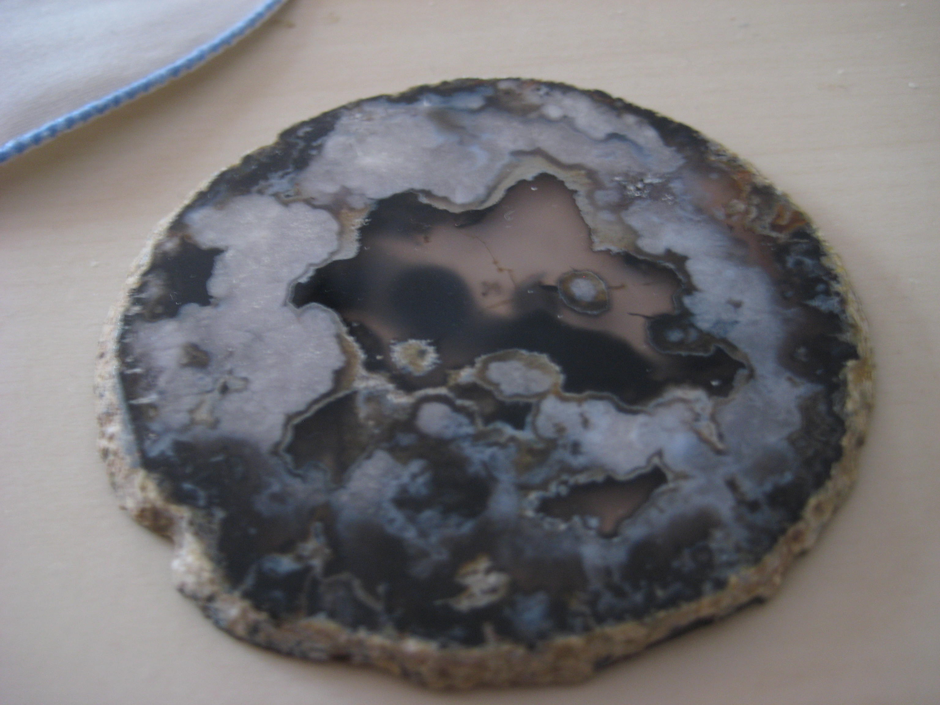 Mir ist gerade dieser Stein aufgefallen. Gekauft irgendwann als Zellenachat. Aber ich glaube das ist ein Mineral aus Skandinavien. Kann mir jemand helfen ?