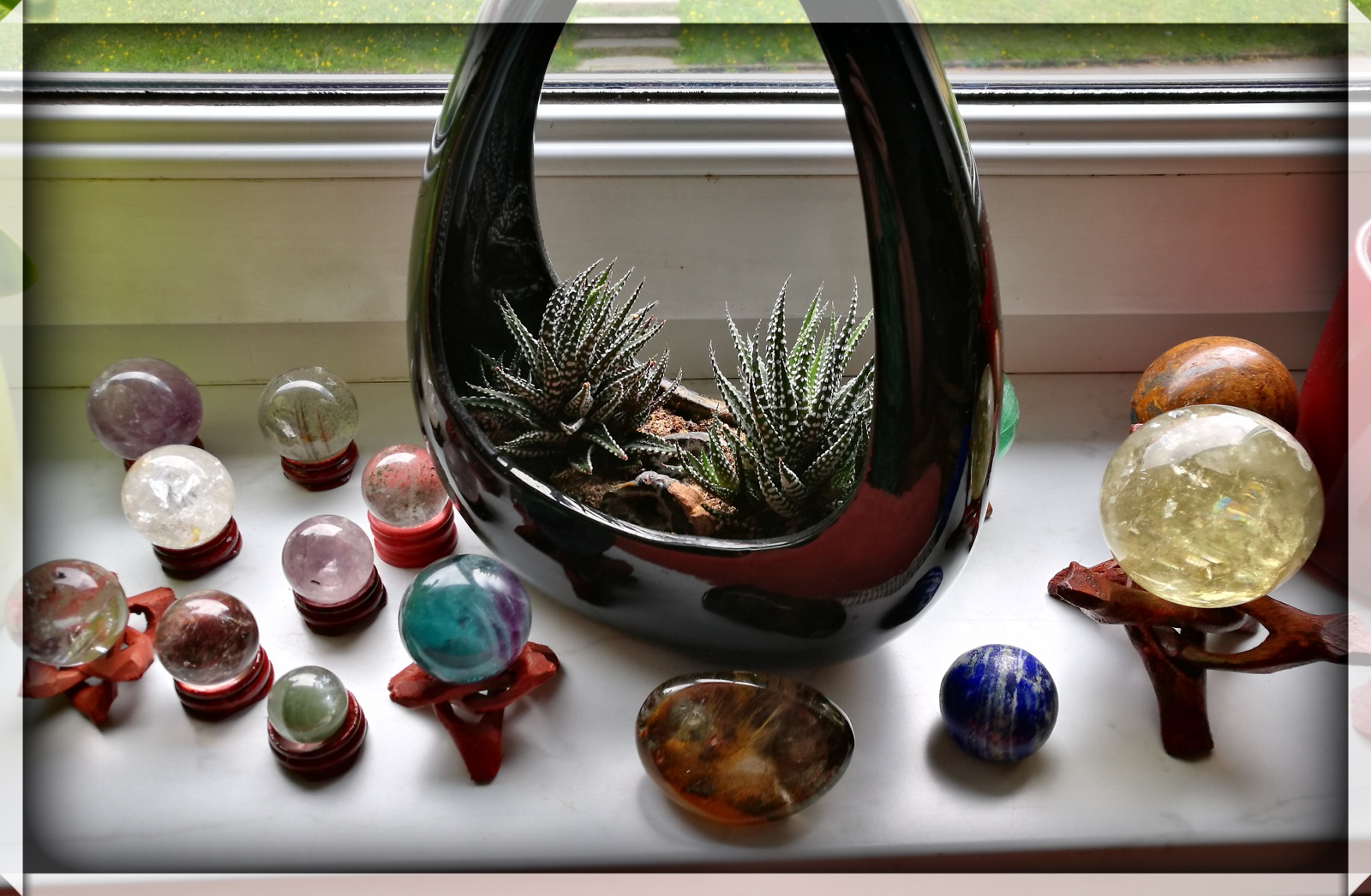 Ich habe mir weniger Gedanken um die Steinart und ihre Wirkung gemacht, bei mir ist es die Optik. An den Fenstern habe ich hauptsächlich Kristallkugeln, also Citrin, Rauchquarz, Bergkristall etc weil ich es so schön finde wenn die Sonne durchscheint ...