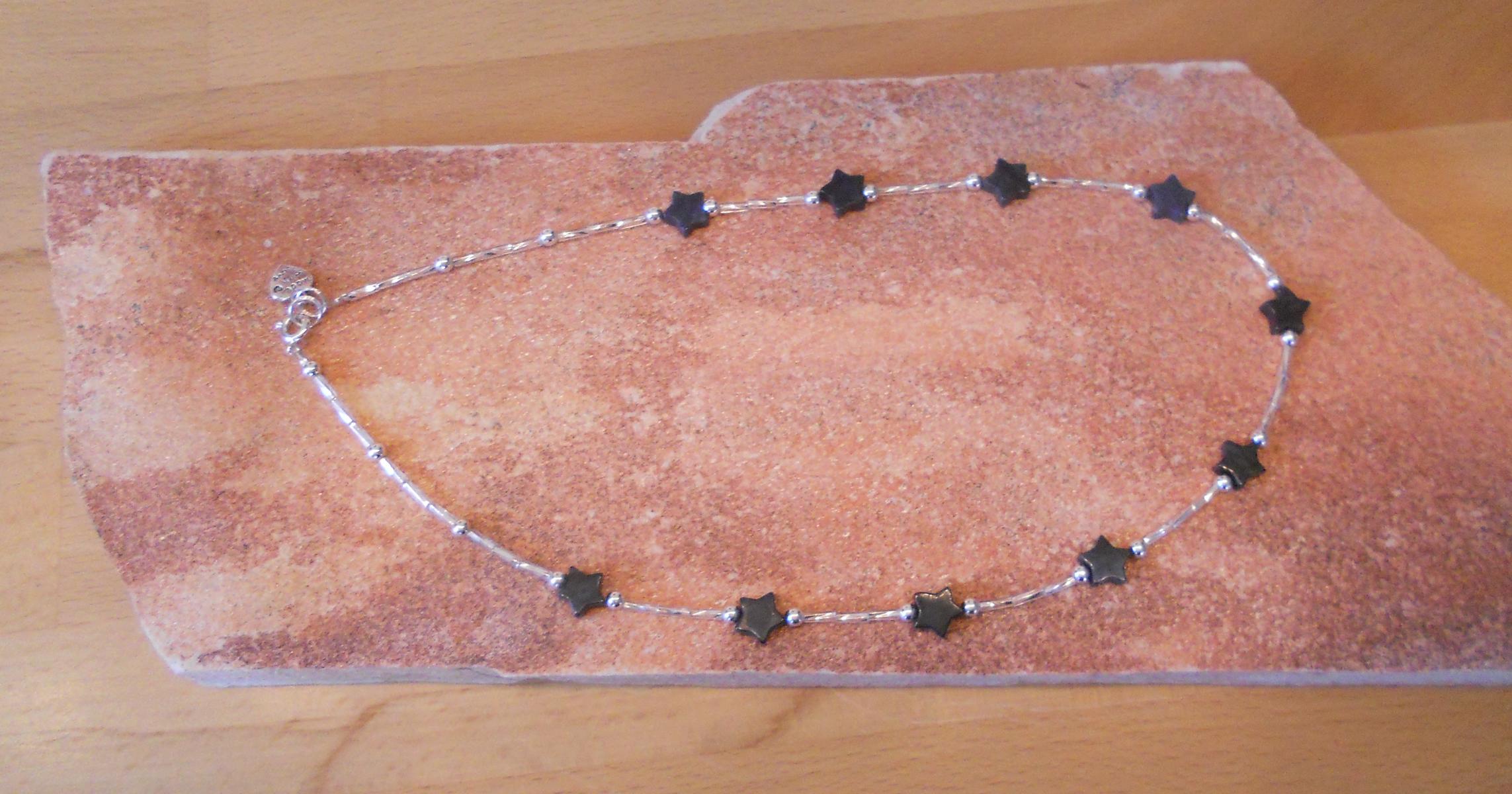 Hier ein Armband aus Schneeflocken-Obsidian, dazu ein passender Kettenanhänger: