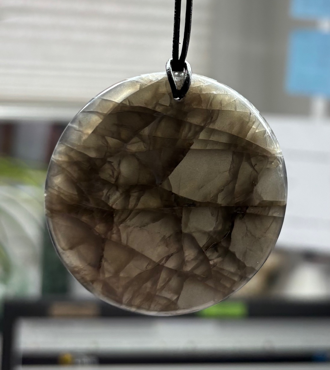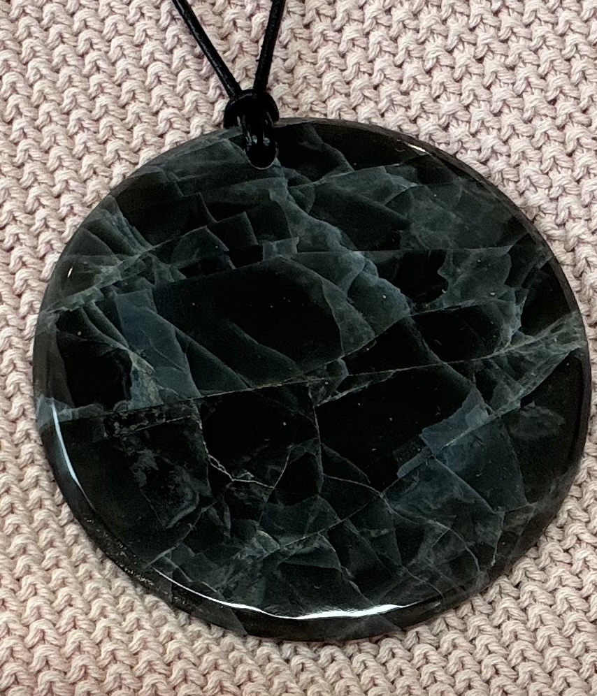 Ich habe einen neuen Anhänger, der mich fasziniert. Gekauft habe ich ihn als Granat in Schiefer: