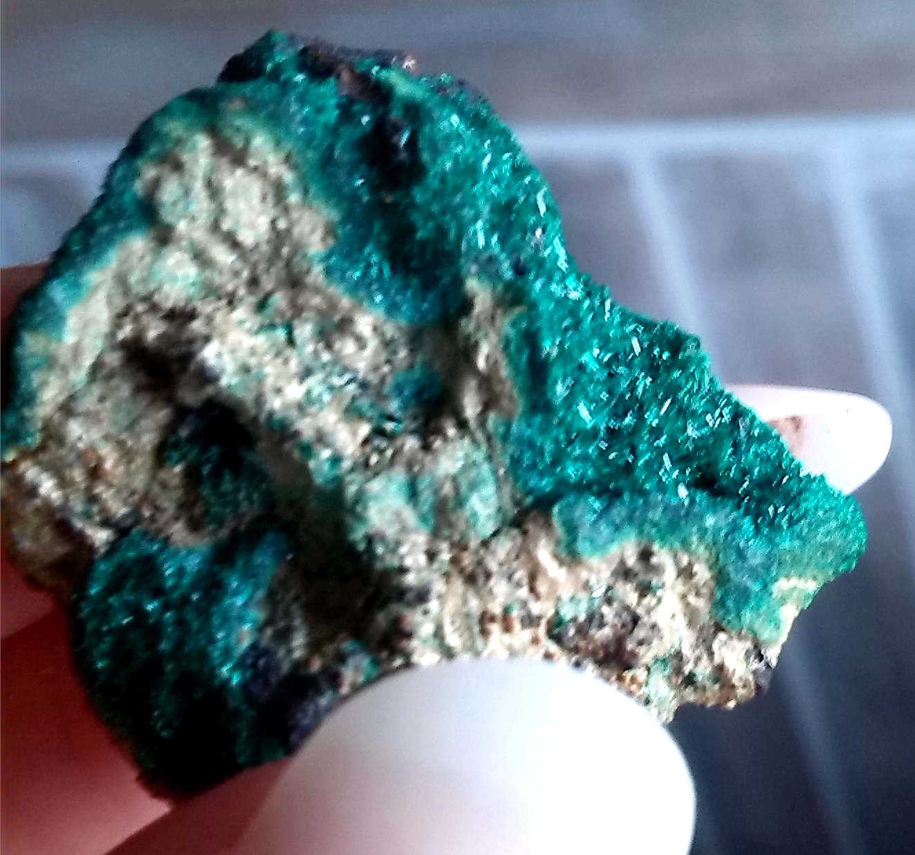 ich hab da noch einen namenlosen Stein. Das Grün ist nadelig und glitzert sehr stark. Leider will sich dieses Steinchen nicht besser fotografieren lassen. Ist wohl etwas zickig.