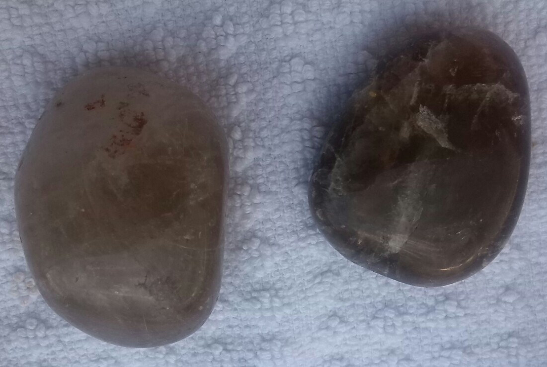auch diese beiden Steine hatte ich heute gekauft. Könnte es sein, dass dies Rauchquarz ist - einmal heller und einmal dunkler.