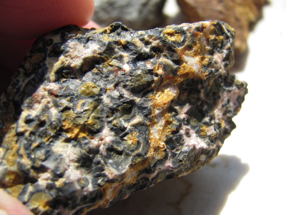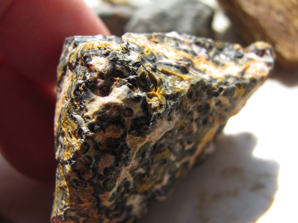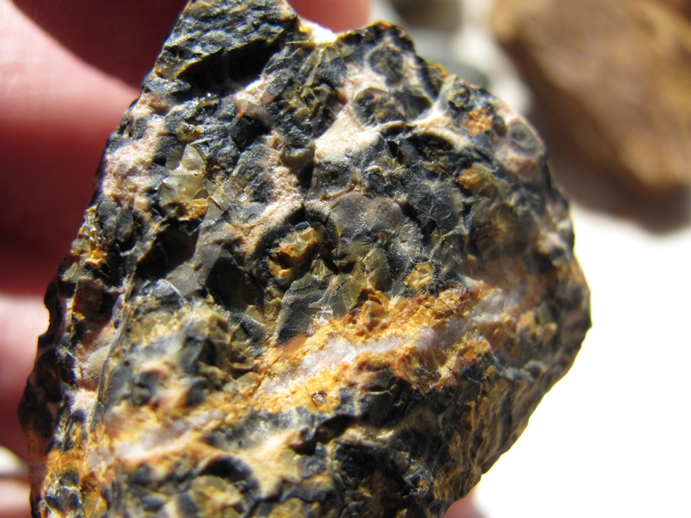 Ich glaube, Klaus hat ganz beiläufig auch noch eine weitere Frage geklärt. Nachfolgendes scheint dann wohl Limonit zu sein. Jedenfalls fand ich beim googlen eben einen ähnlichen Stein, wie folgenden...