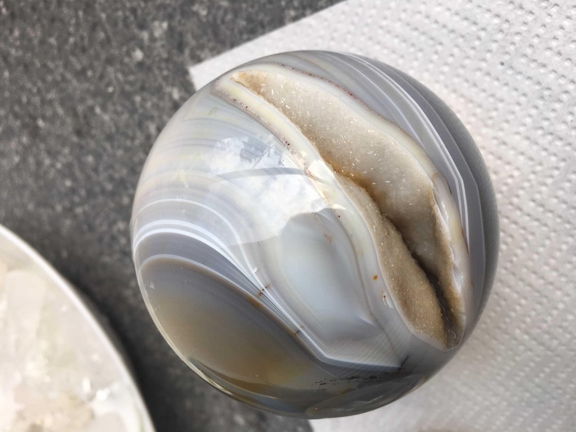 Ist mir beim Reinigen aufgefallen, dass die Kugel noch nicht gezeigt wurde und doch somit ein Achat ins Haus gekommen ist. Die war im Wohnzimmer versteckt und nicht im ...