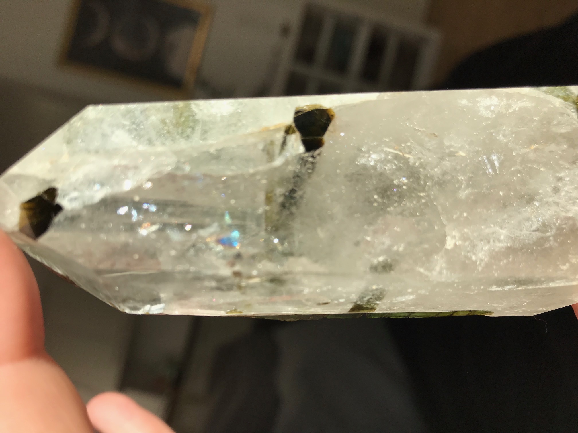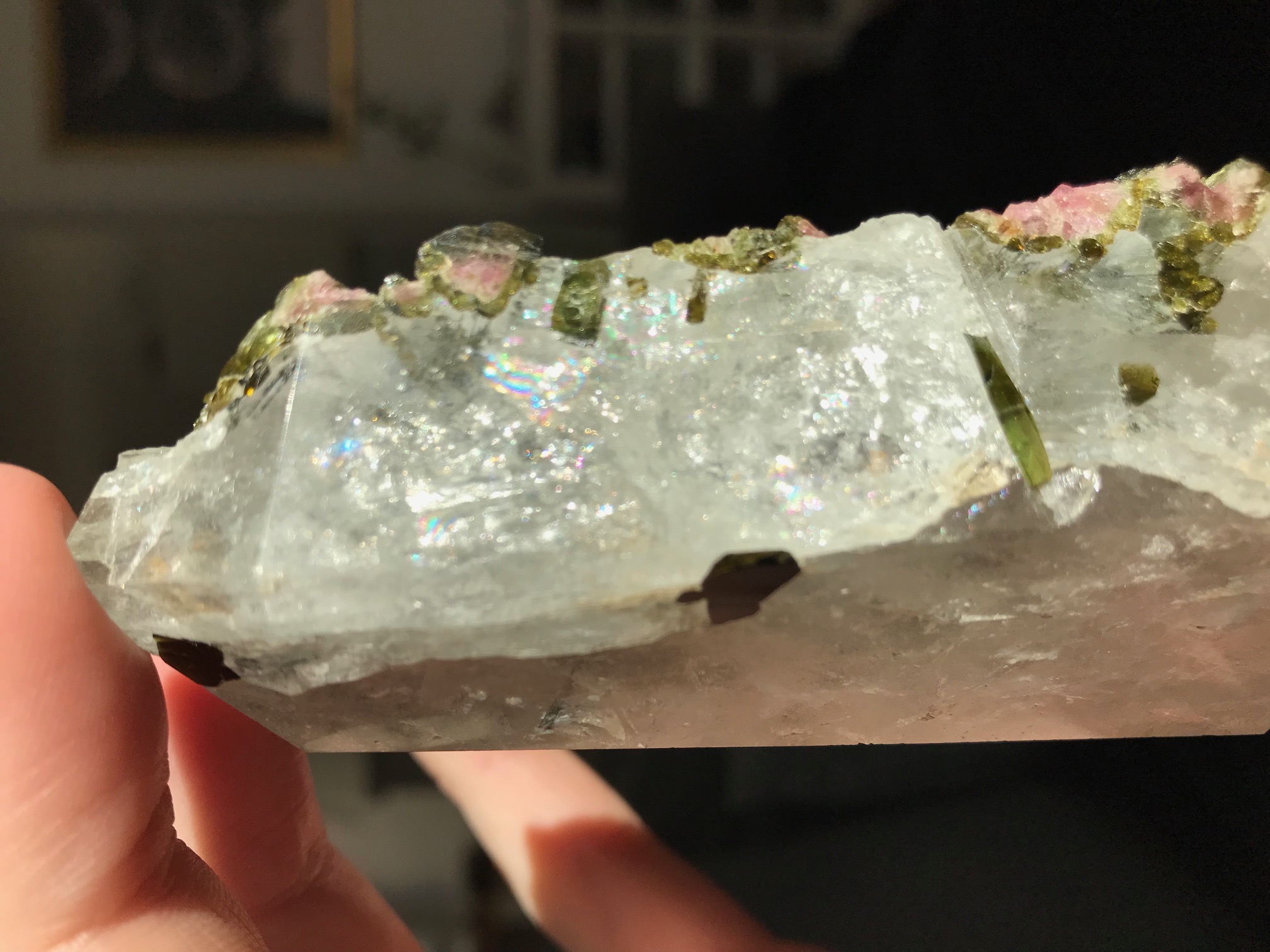 Gestern kam mein unglaublich toller Wassermelonenturmalin in Quarz-Matrix an. Ich bin schockverliebt. Seht euch mal die ganzen Regenbögen an!