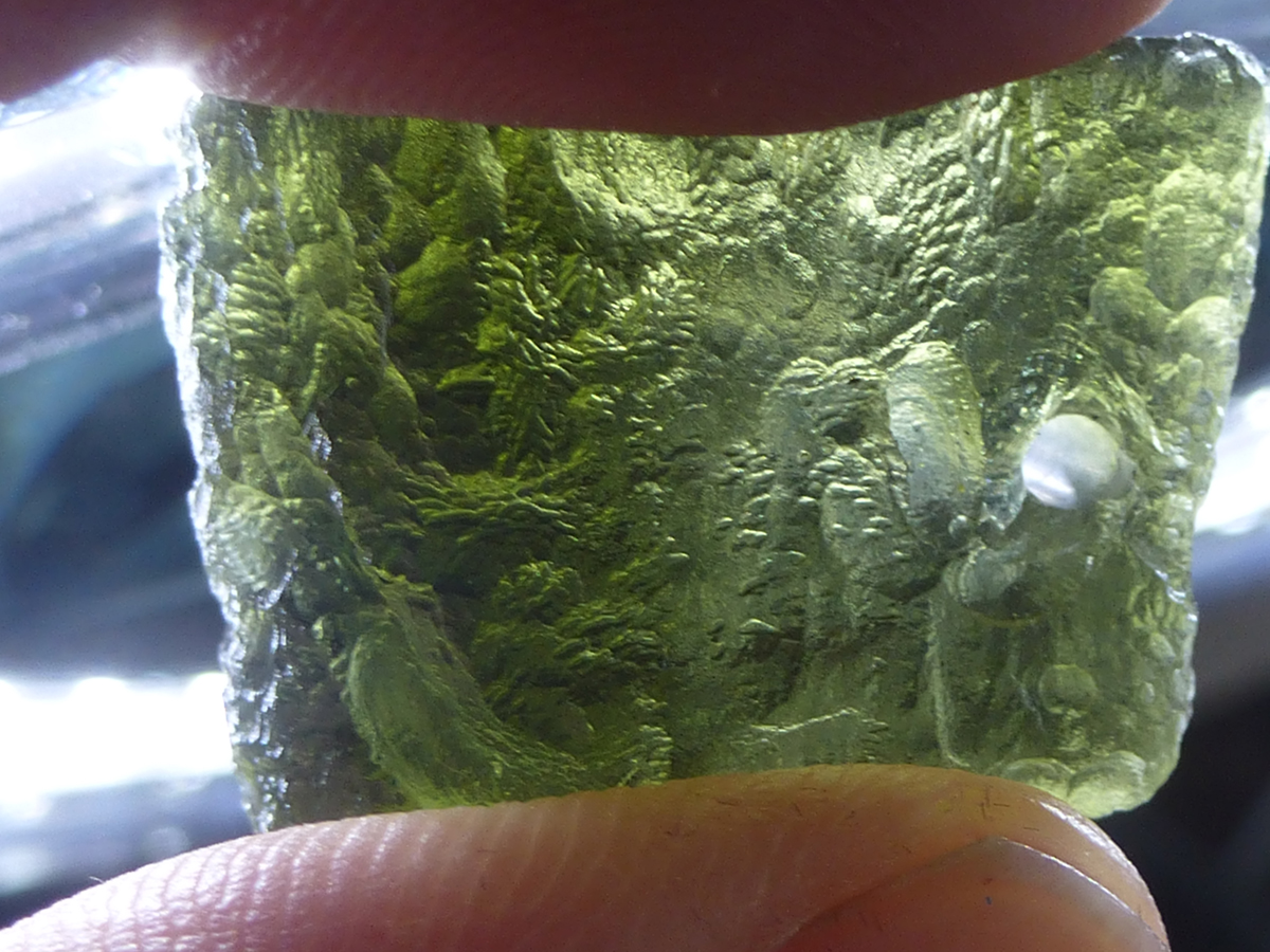 2. am Anfang haben die Chinesen einschlussfreie Moldavite gemacht; da war es leichter zu sehen, ob ein Moldavit echt ist oder nicht. ein reiner, einschlussfreier Moldavit (also v.a. ohne Gasblasen oder Schlieren) sollte immer zu denken geben.
