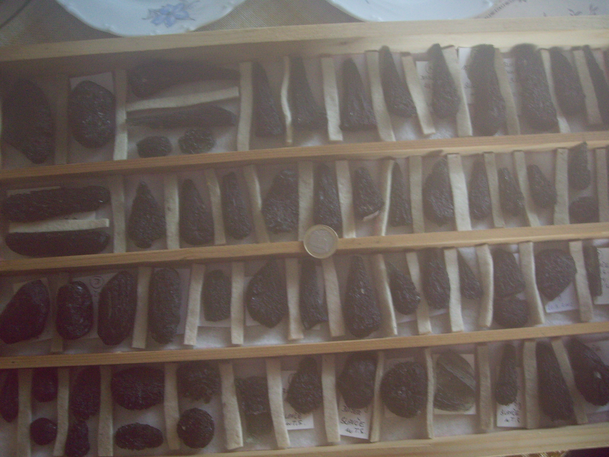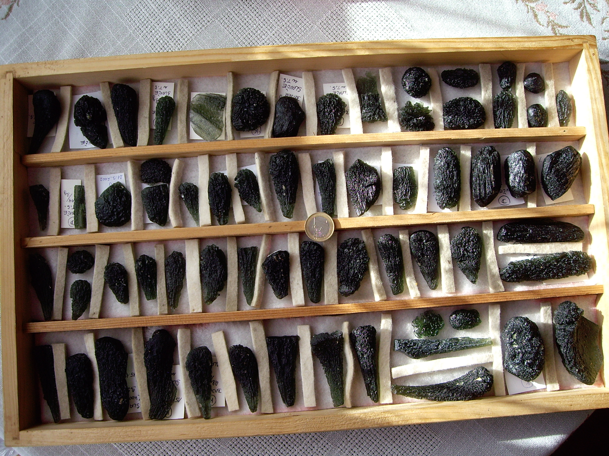 Hier ein Teil der angekündigten Moldavitsammlung meines tschechischen Freundes Hofhanzl aus Tust.