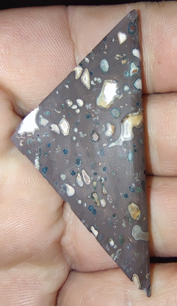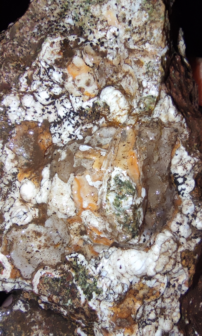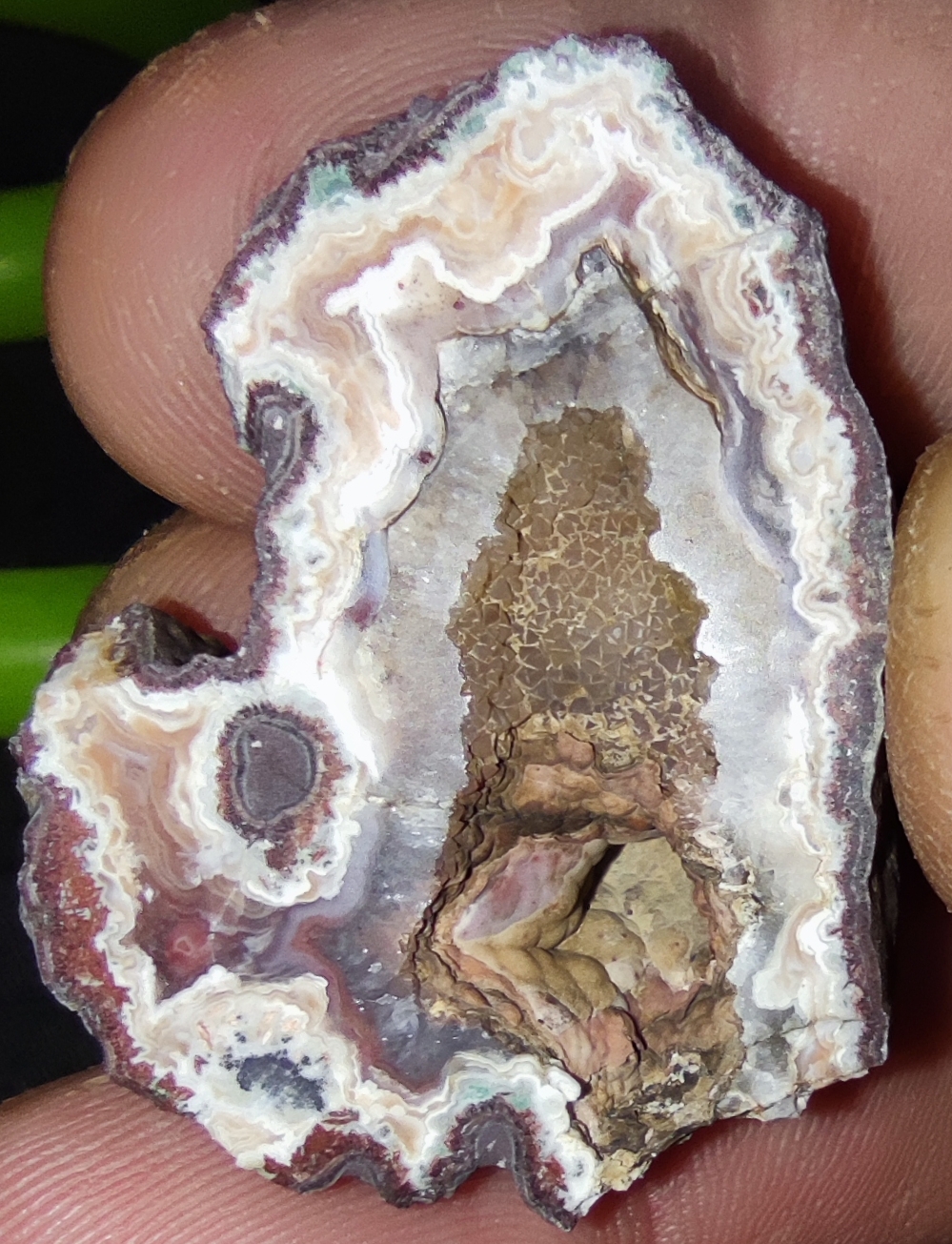 Was mir persönlich sehr gut gefällt, ist die Mandel mit einem sehr großen Rhyolith Anteil. Leider bekomme ich das schöne helle Grün nicht aufs Bild. :cry: