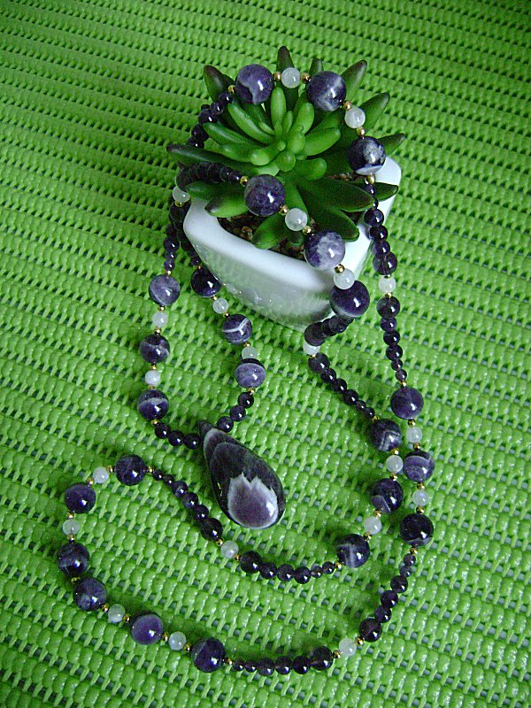 amethyst/chevron amethyst mit mondstein in 110 cm länge ohne verschluss, da bei dieser länge nicht nötig.
