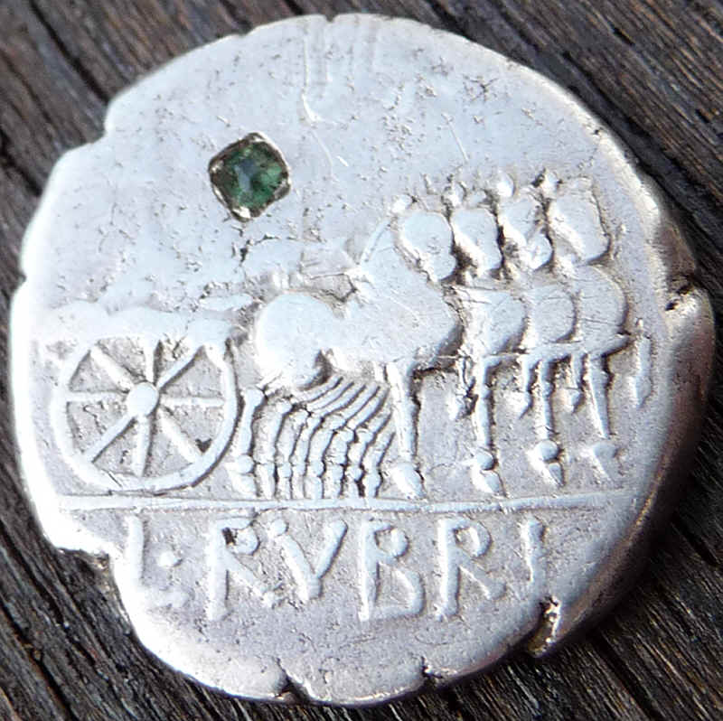 ich bin Sammler römischer Münzen und habe einen ca. 2000 Jahre alten Silberdenar erworben, in den - höchstwahrscheinlich im 3. Jh. n.Chr. ein Edelstein gefasst wurde. Da sich im numismatischen Forum keine Experten für Edelsteine finden, hoffe ich hier auf ein wenig Licht im Dunklen des Rätselratens, um welchen Stein es sich handeln könnte. Getippt wurde bisher auf Smaragd, grünen Amethyst, Peridot, Aquamarin etc... oder auch einfach grünes Glas. Der Stein hat eine Grösse von knapp 2 mm und ist unregelmässig geschliffen.