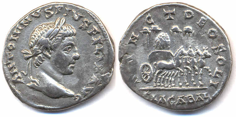 Die Tendenz geht eindeutig zum Smaragd hin, und das hat die Bewandnis, dass für die Römer der Smaragd ein Stein von Gott Merkur und damit ein Schutzstein für Reisende war. Eine numismatische These lautet dahingehend, dass der "Produzent" dieser Münzumgestaltung ein Anhänger des Kaisers Elagabal war, der den Transport des heiligen Steines von Emesa nach Rom darstellen wollte.