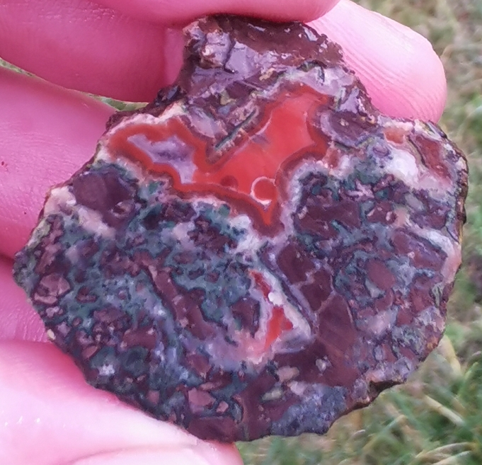 Beim letzten bild ist der achat klar zu erkennen. Beim ersten bild würde mich interessieren wie das erkannt wurde, denn das kennzeichen von achat, bänderung ist da nicht zu sehen, sondern dann ja nur etwas, was mit dem achat vergesellschaftet ist, im innern, was alles mögliche sein kann, calcit, quarz etc.......