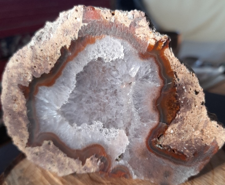 Ich würde auch sagen, es ist ein roter Achat, vielleicht mit etwas Quarz drum herum. 🥰