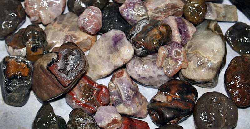 Gummistiefel an und so suchte ich Siebkornhalden auf. So fand ich auch einige Steine -Amethyst ,Calcedon .Achat und versteinertes Holz.