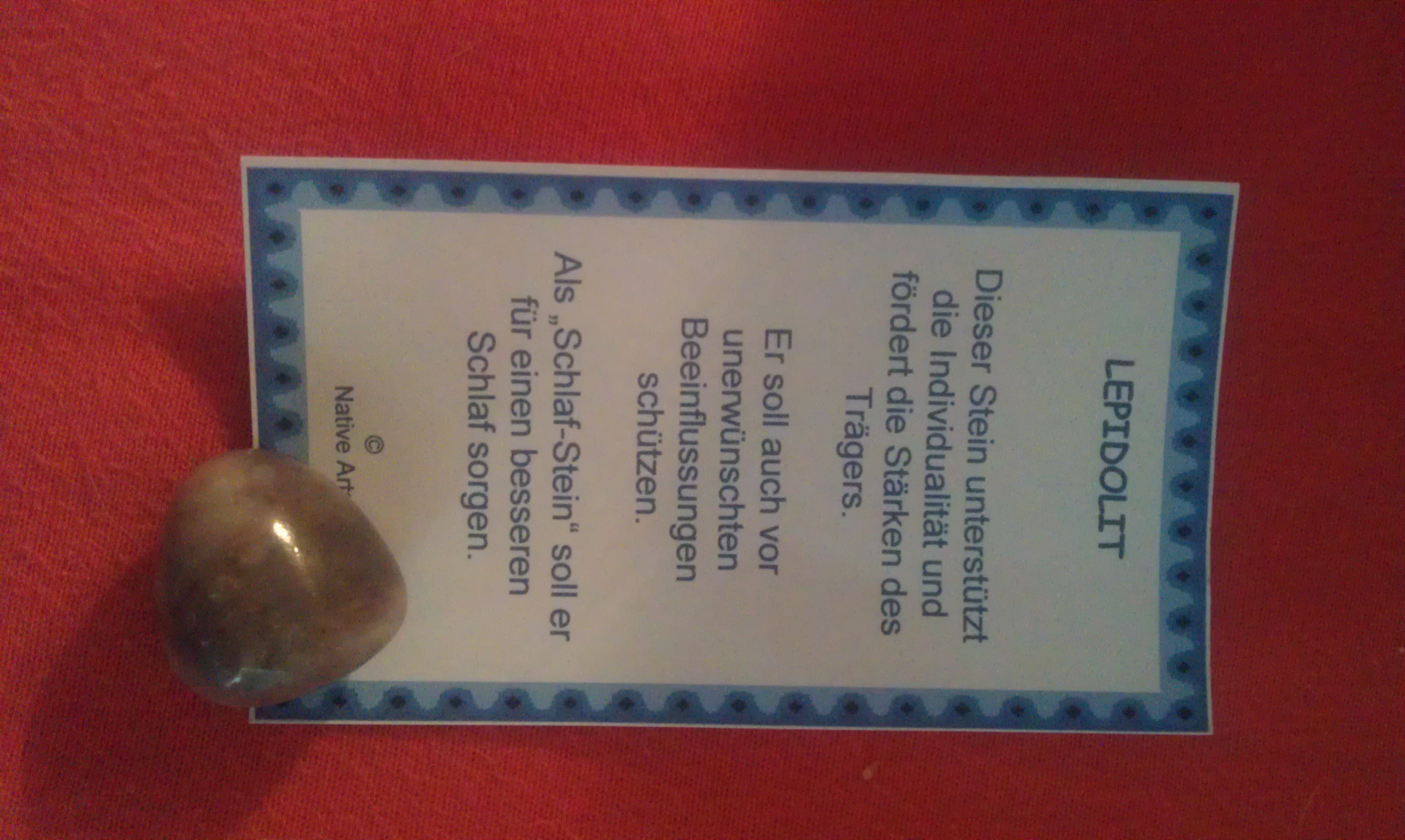 Hab mir heute diesen Lepidolit gekauft und werde ihn heute Abend gleich testen.