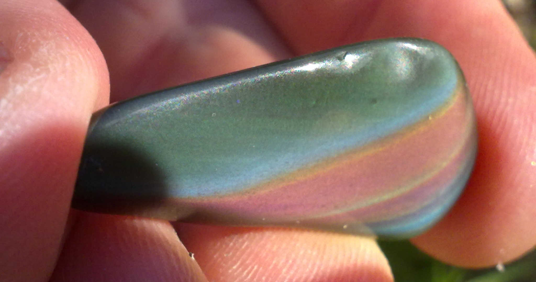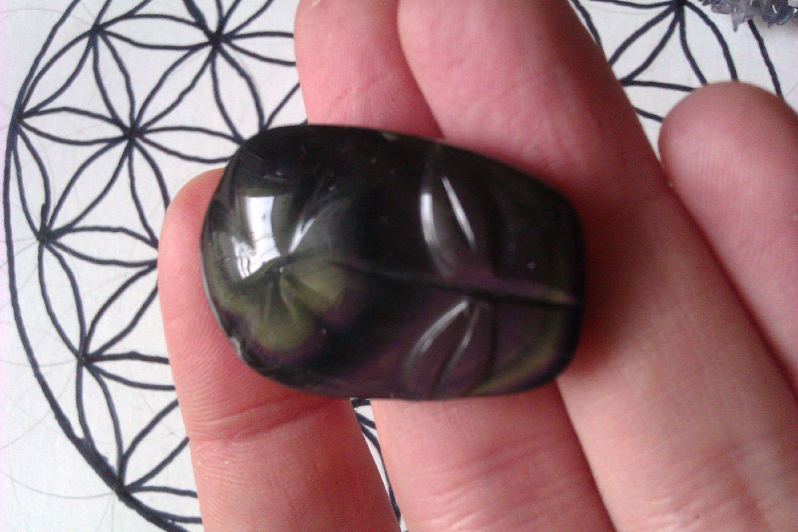 Mein Regenbogenobsidian, der wie ein Obsidianspiegel geschliffen ist.