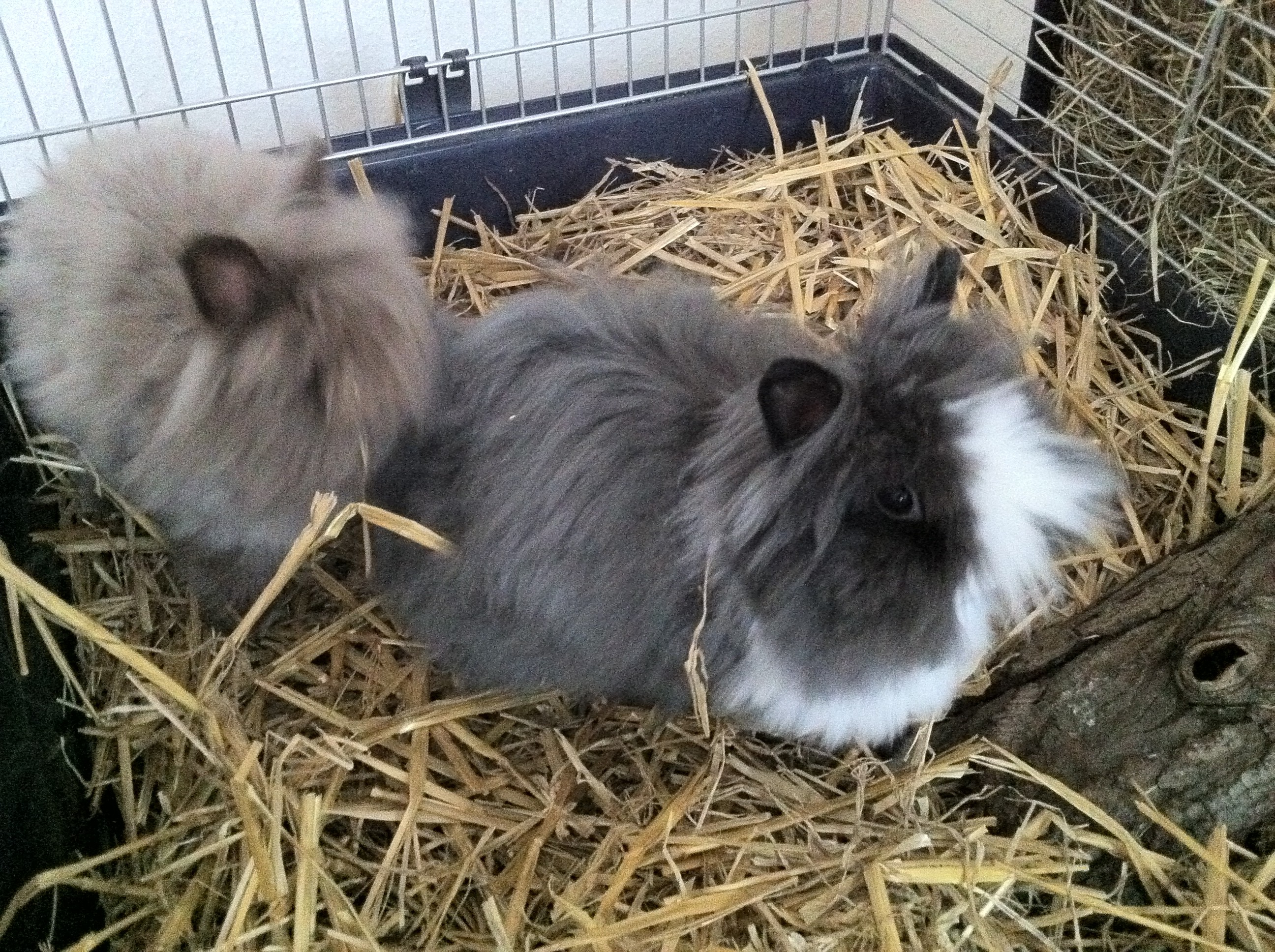 Einen doppelstöckigen Käfig, zwei Häuser, Heuraufe, Futter, Streu und so weiter....