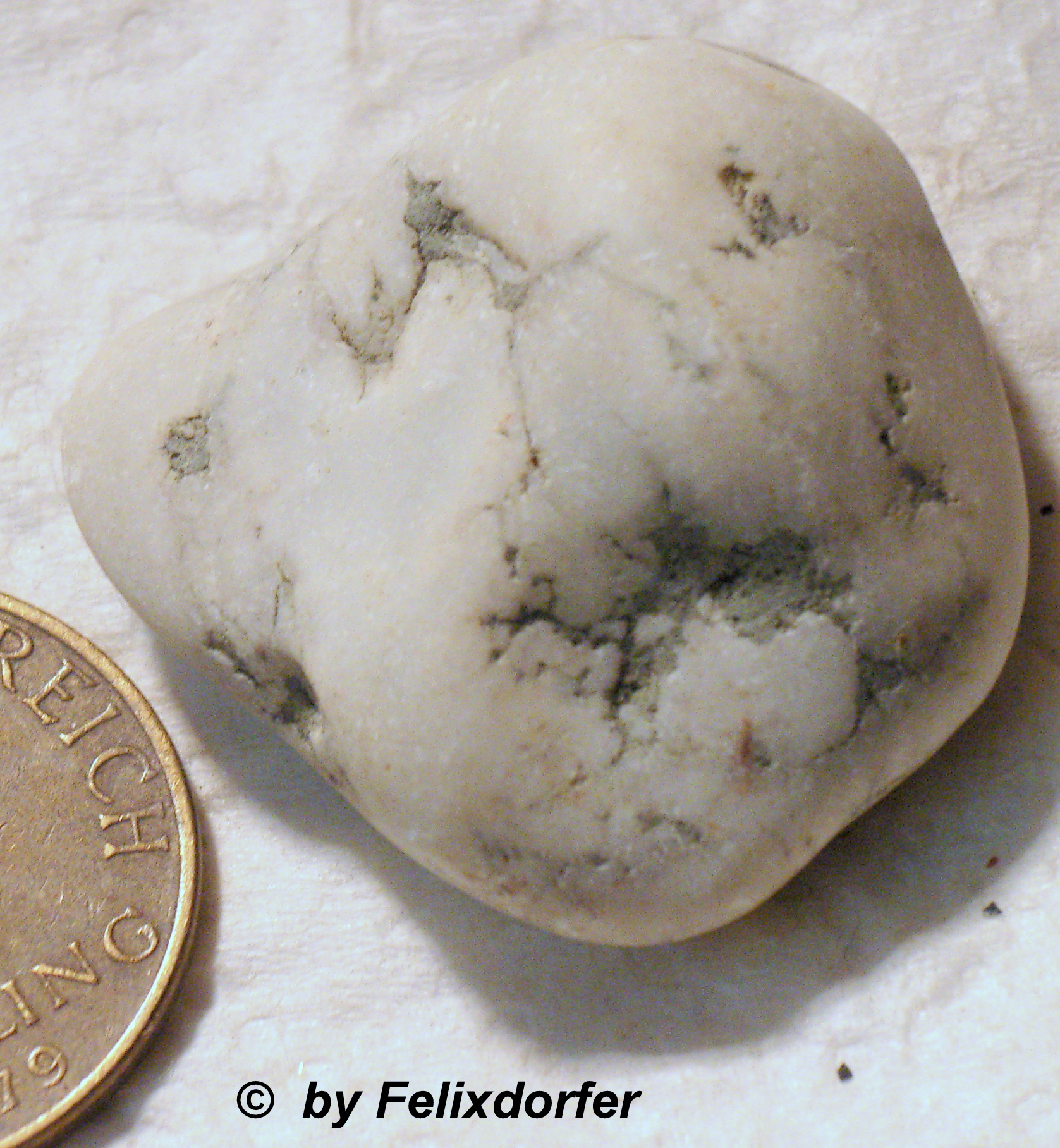 Als erstes hier einen etwas schmutzigen Stein mit grünenen Einschlüssen