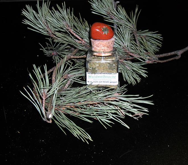 Schon im letzten Jahr machte ich für mich die Räuchermischung 'Waldweihnacht' und freute mich, den Geruch so nachempfinden zu können, wie er damals meine Nase erfreute. Erst auf das Drängen von einigen Freunden hin, machte ich die 'Waldweihnacht' dann in größerer Menge, damit auch alle Räucherfans in diesen Genuß kommen konnten.