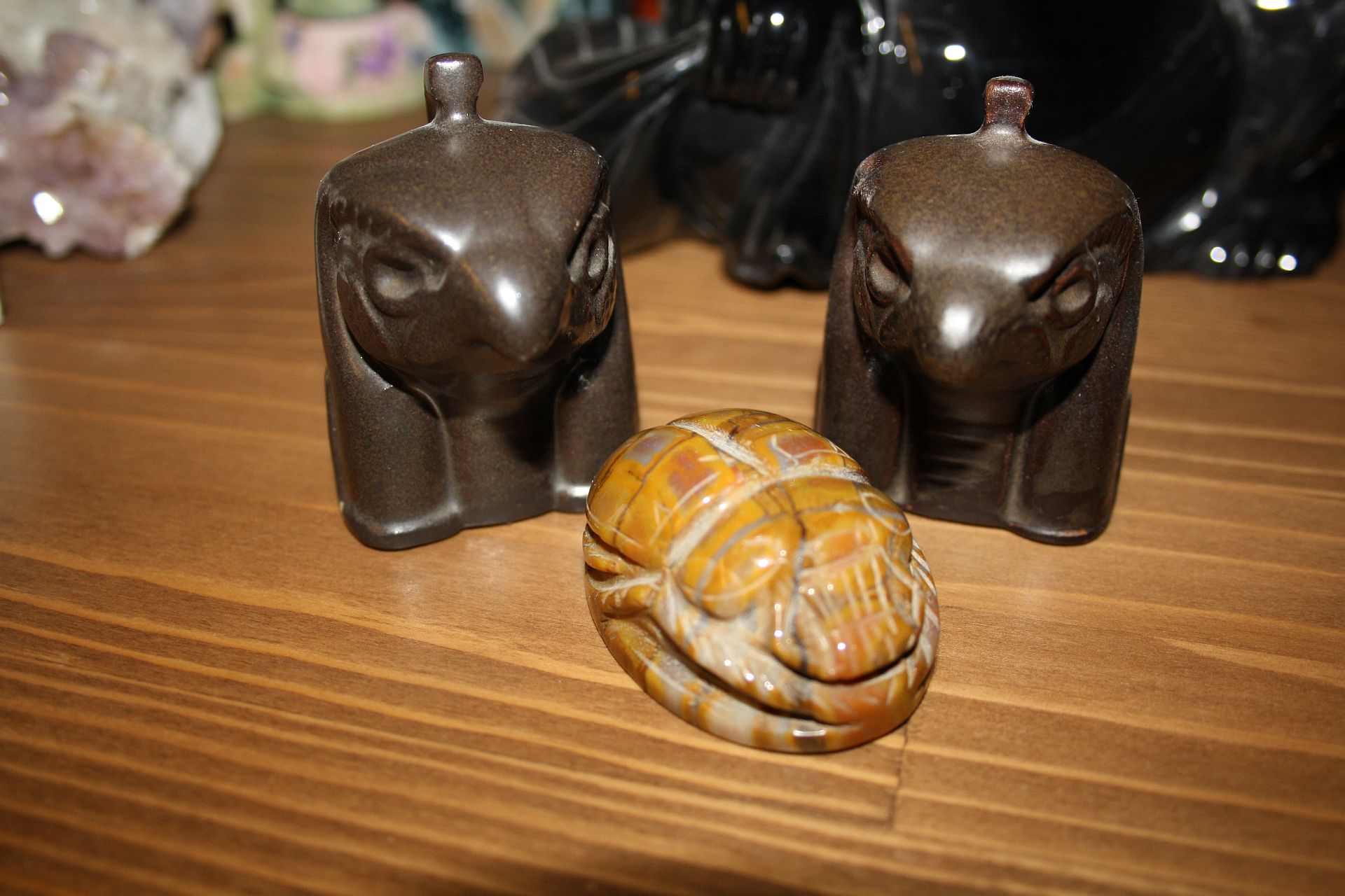 wunderschöne Krabbelkäfer liebe Nosferati.. soll das auf dem letzten Anubis darstellen? der gefällt mir besonders gut, er ist seeehr seehr schön verarbeitet... (da fällt mir aber ein/auf... meine kleinen ägyptischen postpakete würden eher aus silber bestehen.... ist das auch okay oder hast du nur interesse an den symbolen aus stein/holz, nicht dass wir da aneinander vorbeigeredet haben.. =))