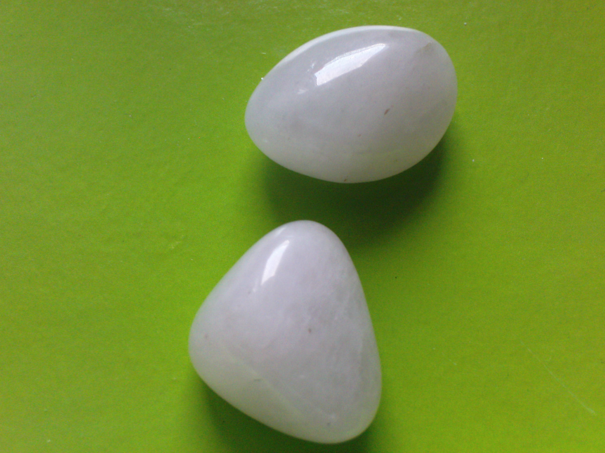 und dann hätt ich noch diese Beiden hier. Irgendwie erinnern sie mich an Rosenquarz, aber da sie wirklich richtig weiß sind, kann das ja wohl nicht passen, oder? Was sagt Ihr dazu?