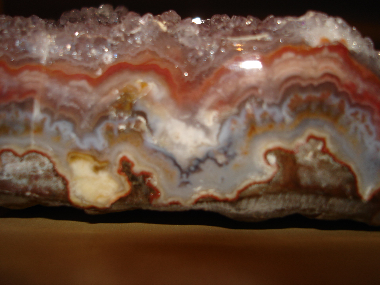 Ja und bei dem Achatstück mit dem Amethystrasen drauf handelt es sich bestimmt um ein Drusen Stück aber von der Farbe her kommt der nicht aus Brasilien. Wirklich ein wunserschönes Stück.