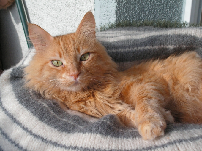 Dann haben wir zwei Kater, Alan und Spot. Wir hatten noch einen Kater, Denny, der ist mit wenigen Monaten gestorben. Er war aus Spanien, hatte keinen Schwanz und war auch von Anfang an kränklich. Aber er hatte ein paar ganz tolle Wochen hier bei uns, ist zeitweise ganz arg aufgeblüht, bevor er dann leider an FIP (das Grauen jedes Katzenbesitzers) auf unserem Sofa gestorben ist.