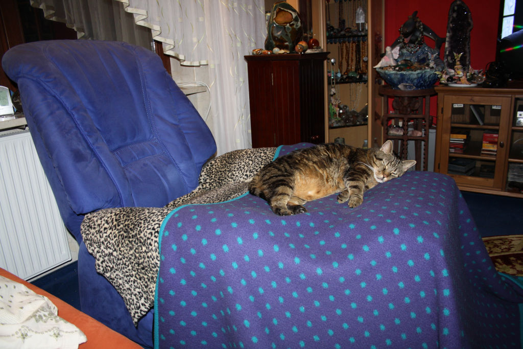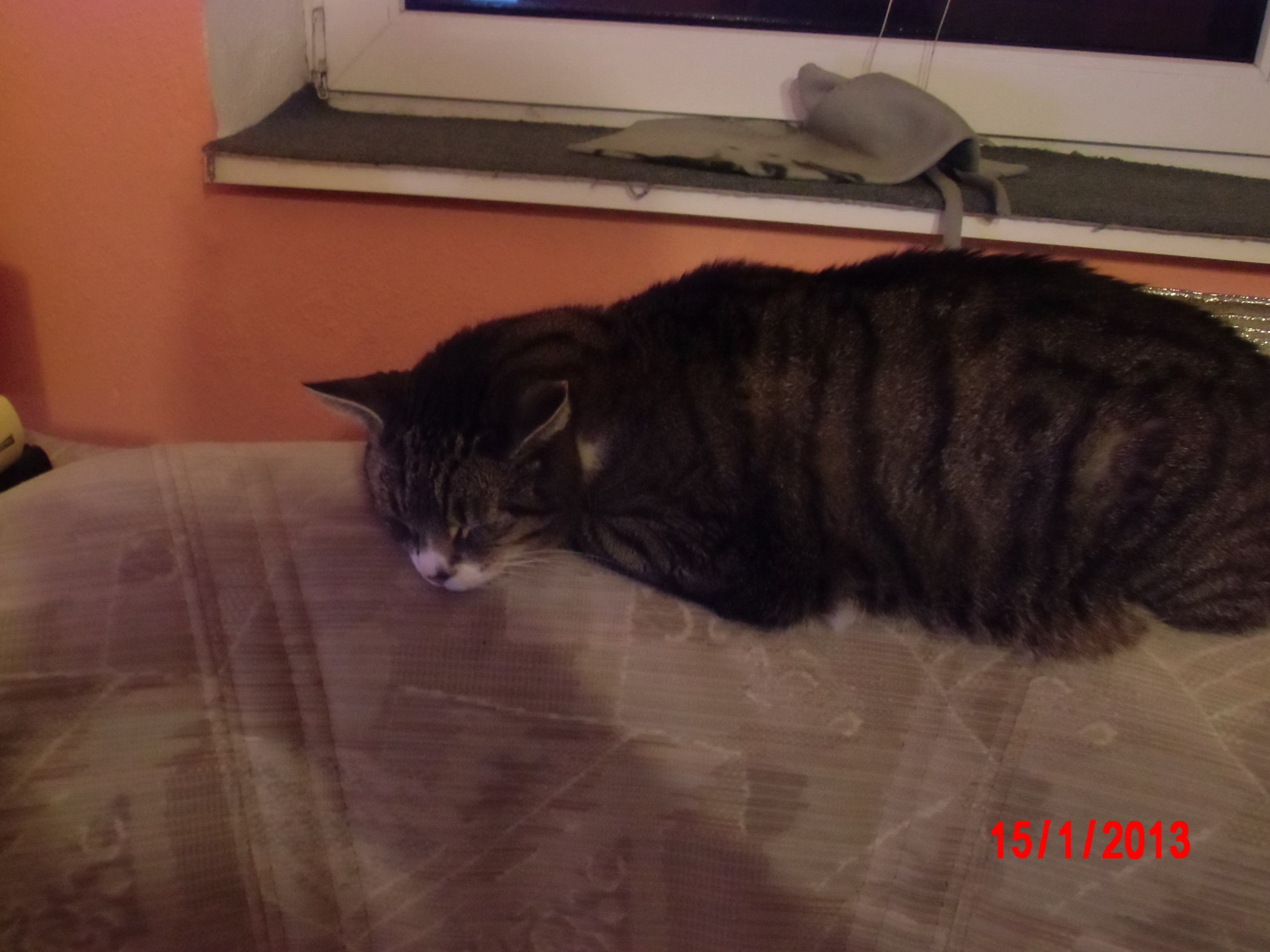 Hier Benny(mein Herzkranke Kater) eingeschlaffen beim mitlesen hier im Forum.