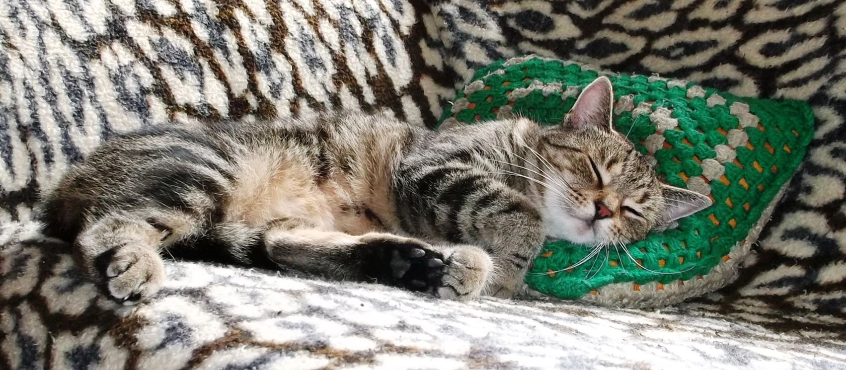 So hier Bienchen wie Sie tief und fest in ihrer Liegemulde an der Heizung schläfft.