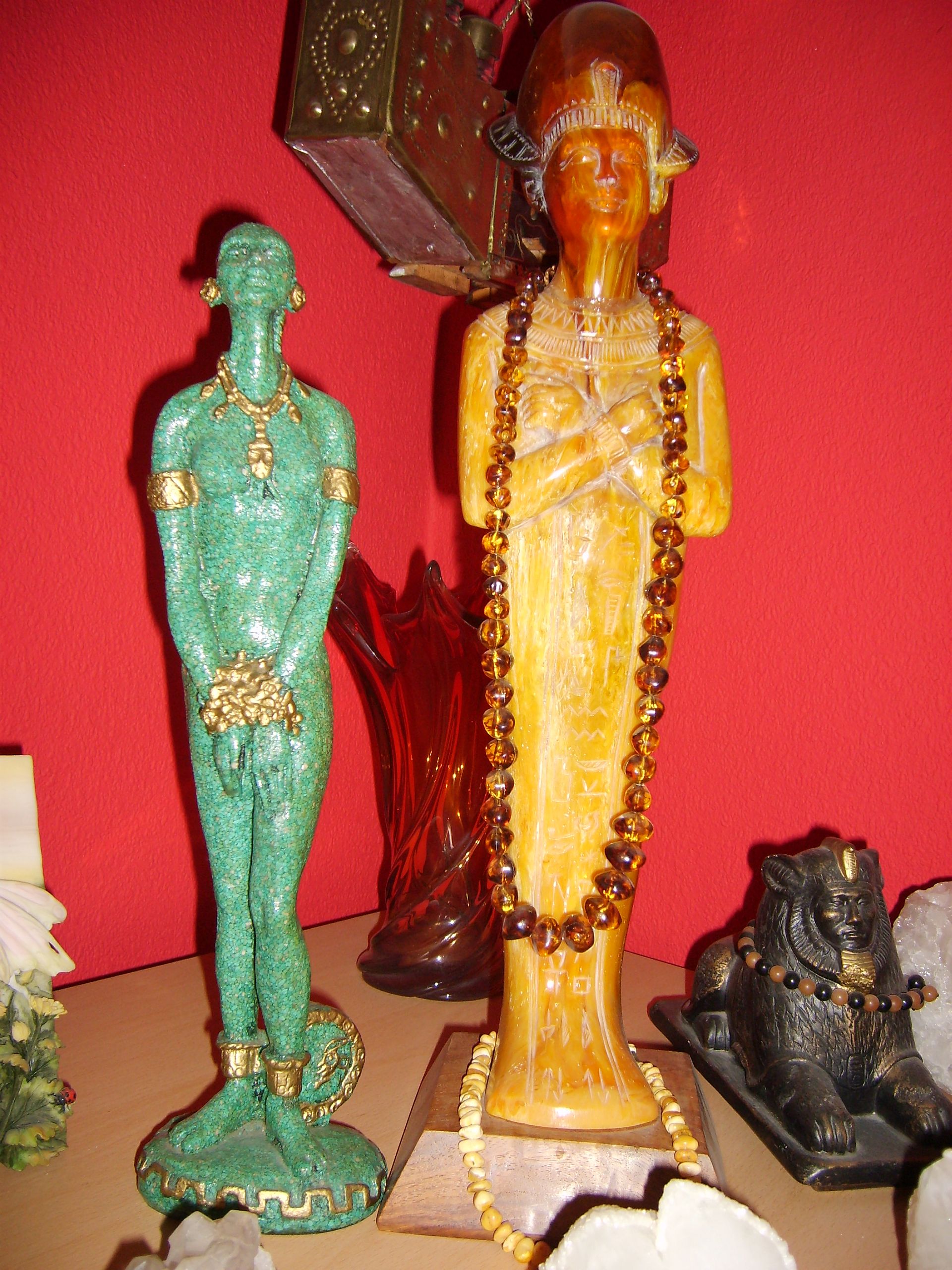 Bernstein-Pharao mit Mexikanischer Göttin.jpg