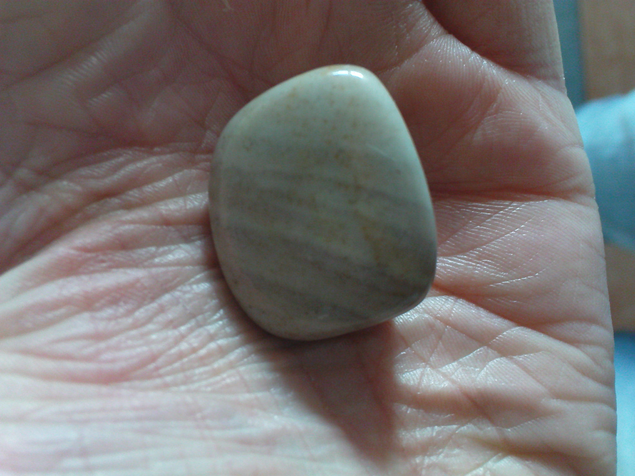 Schade dass das Foto so schlechte Qualität hat, denn auf dem Foto kann man zwar den Schiller vom Hyperstehn schon erkennen aber bei dem Stein kann man nciht erkennen ob es sich um Jaspis mit Chalcedon oder wirklich um einen Mookait handelt.
