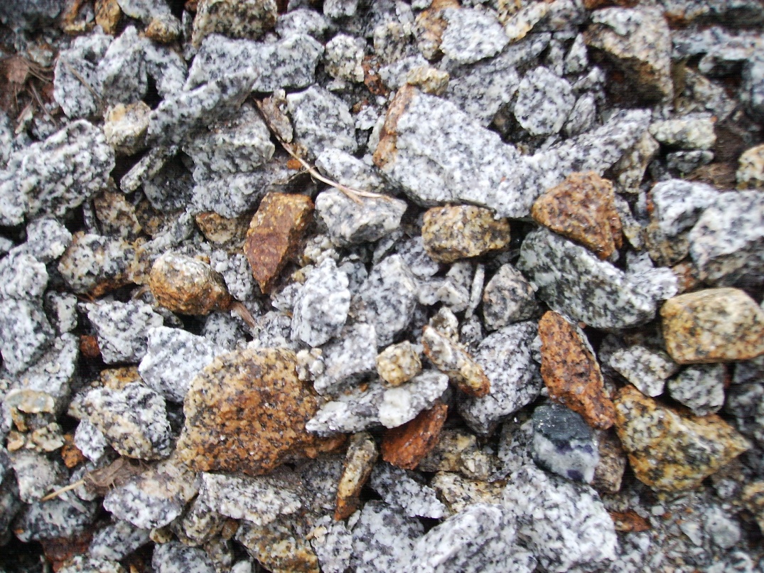 hier der Anfang: normaler Granit und eisenhaltiger ( angerosteter / oxydierter --- rötlicher ) Granit
